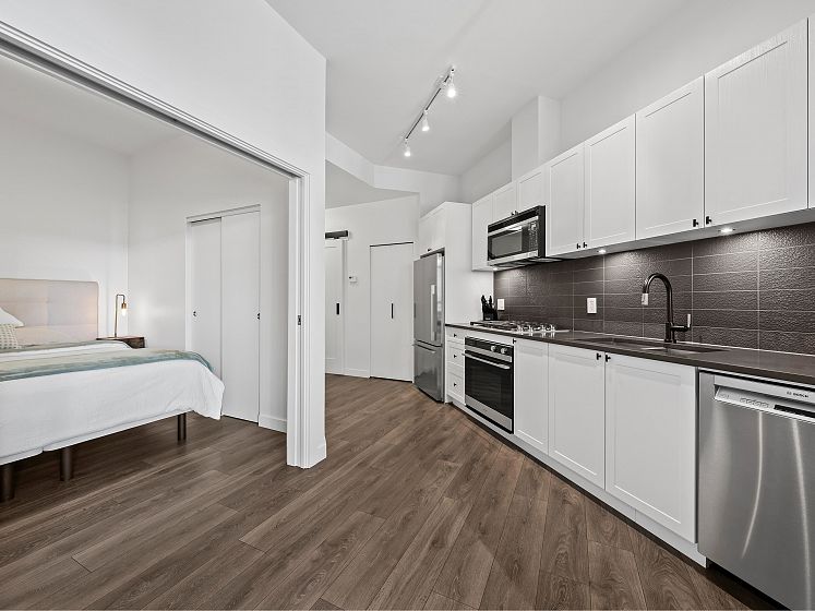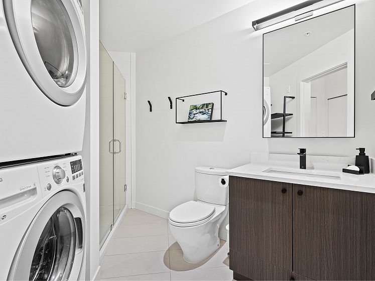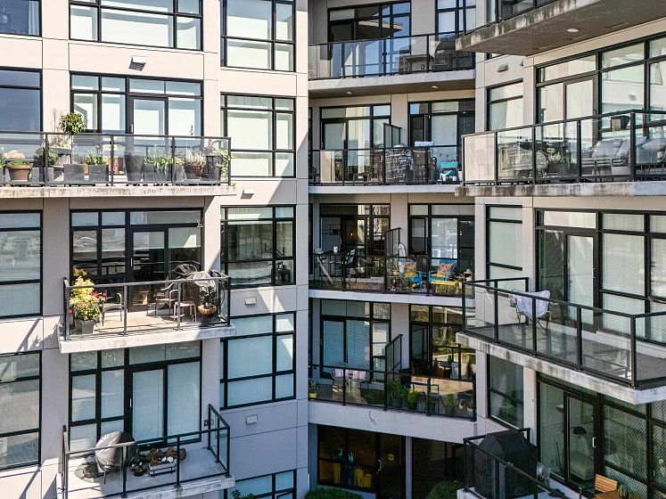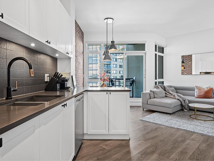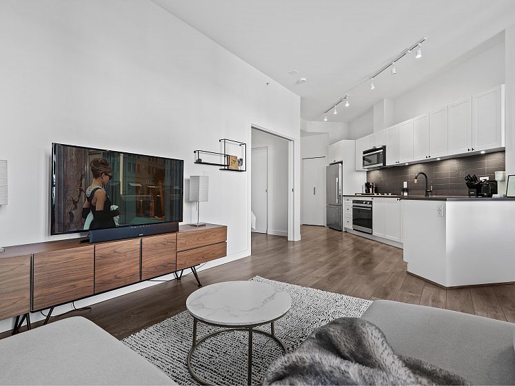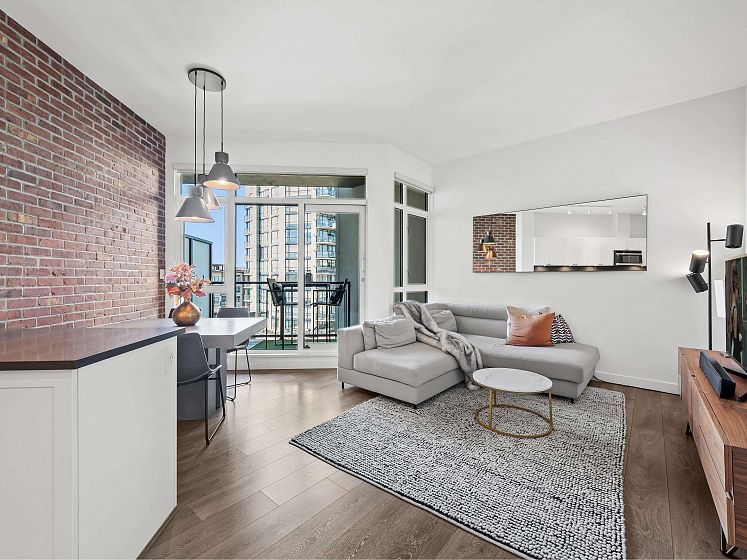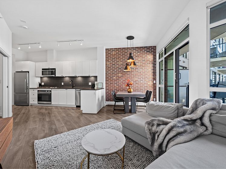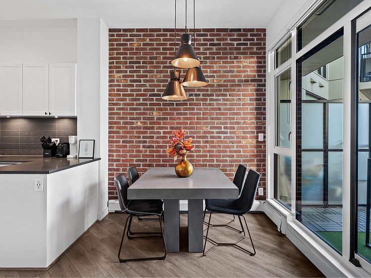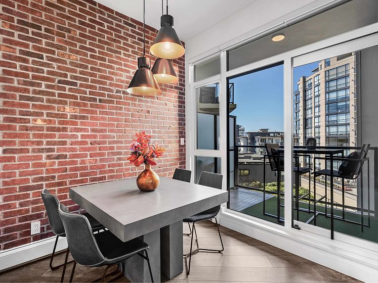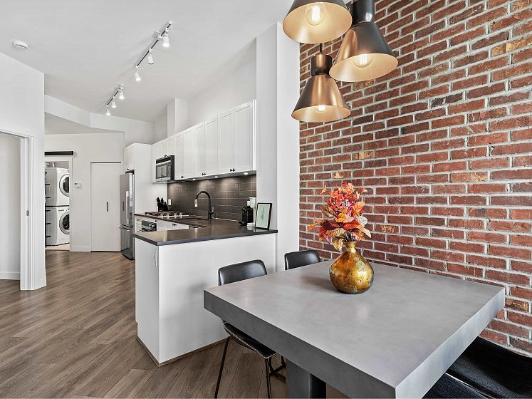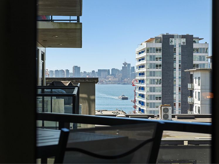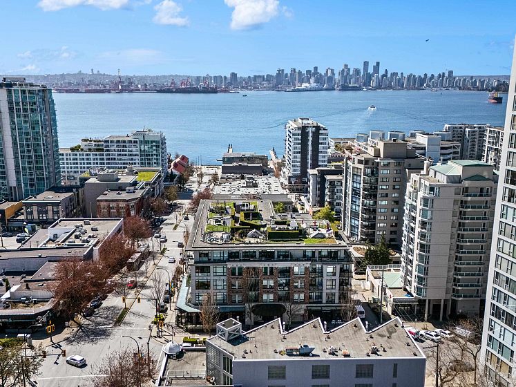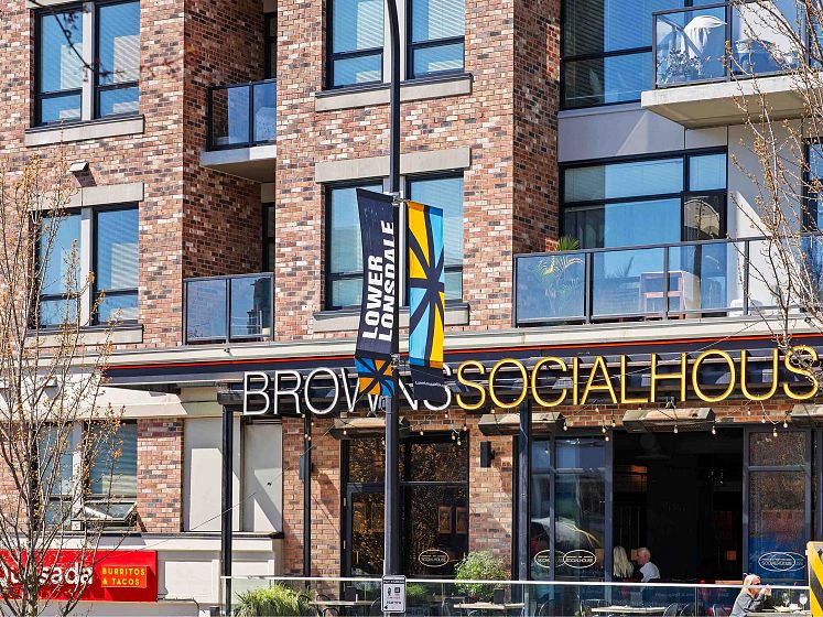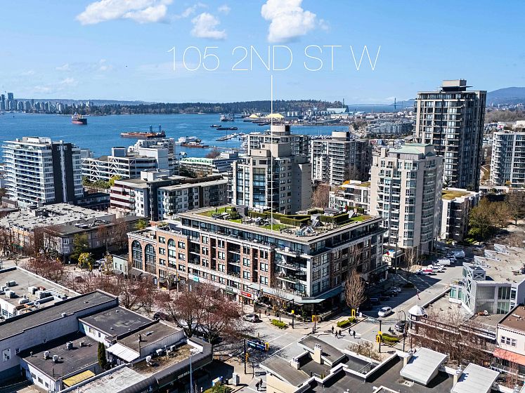 New York + Yaletown meet North Vancouver! Immaculate 1-bedroom unit at coveted Wallace & McDowell, a boutique concrete building in the heart of Lower Lonsdale. This character-filled condo blends modern comfort with timeless design by award-winning firm Rositch Hemphill Architects, featuring exposed brick, warm finishes and upscale kitchen with gas cooktop. Airy 10' ceilings with a bright, open layout with 6" concrete "fin walls" between homes. Enjoy a charming outlook with city and ocean views. Includes 1 EV-ready parking stall AND 2 lockers -- full-sized PLUS bike locker. Solid build, beautiful unit in a well-run building! 2 pets welcome. Step out to immediately enjoy exceptional restaurants, cafes, breweries, Shipyards, Seabus, restaurants and vibrant LoLo living.