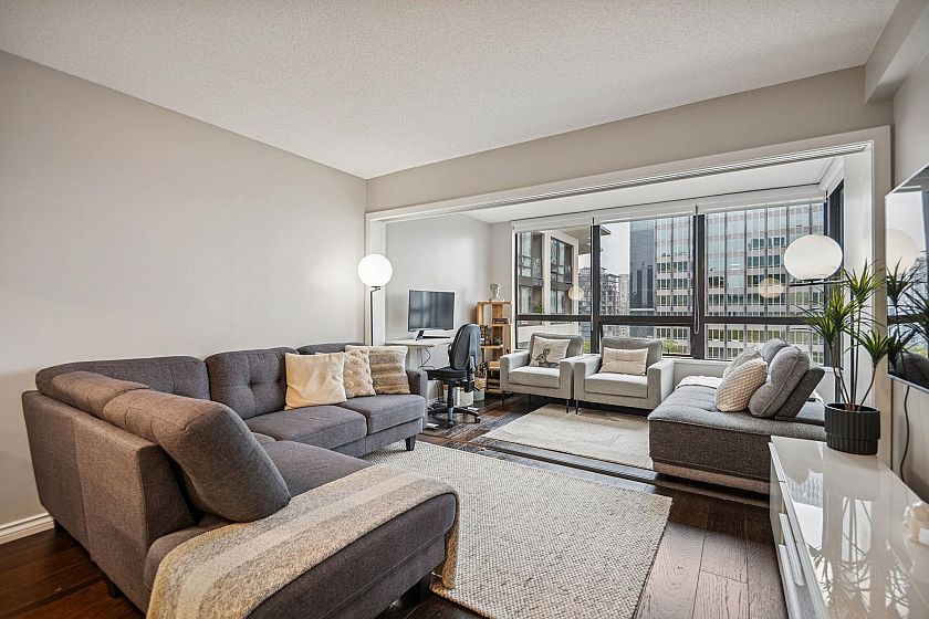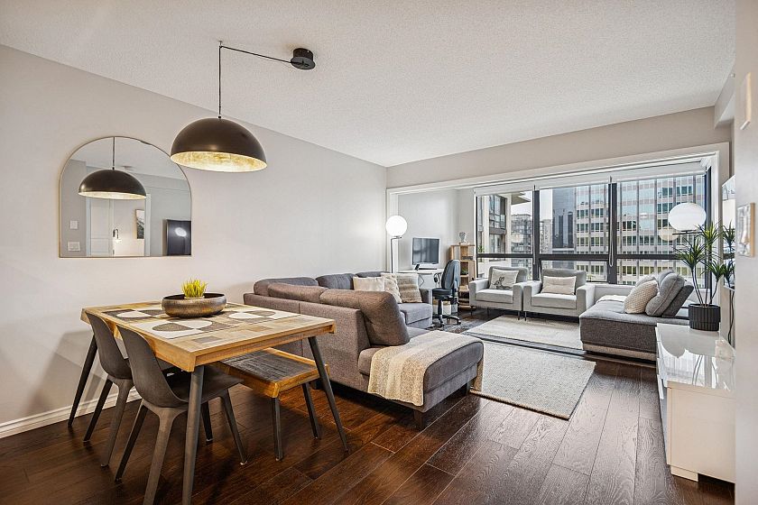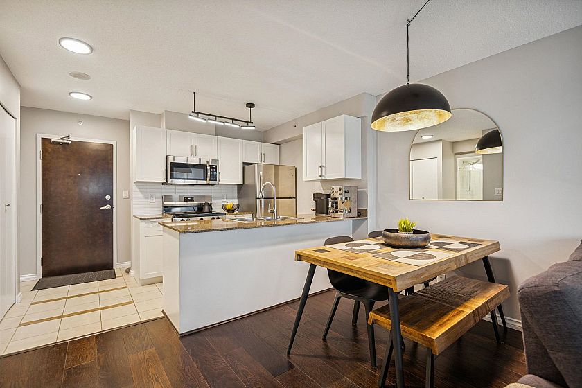 Stunning SUB PENTHOUSE at Electric Avenue! Rarely available, this FLEXIBLE FLOORPLAN can be used as a spacious 1 BDR/Den w/ flex, or converted to a cozy jr 2 br with den/office. Recently updated with new appliances, light fixtures, fresh paint, new blinds, balcony floors, and a glass shower door. Enjoy the best views of downtown from your patio or cozy up in your living room. Extremely central location, 2 min walk to restaurants, transit and shops. With top-notch amenities including a fully equipped gym, 24-hour Concierge, function/meeting & party rooms, theatre, and 2 rooftop outdoor spaces, this Bosa Building stands out. Whether you’re a savvy investor or end user, this one is HARD TO BEAT.