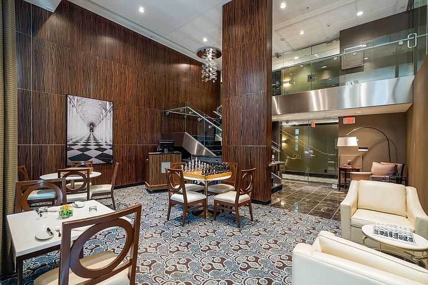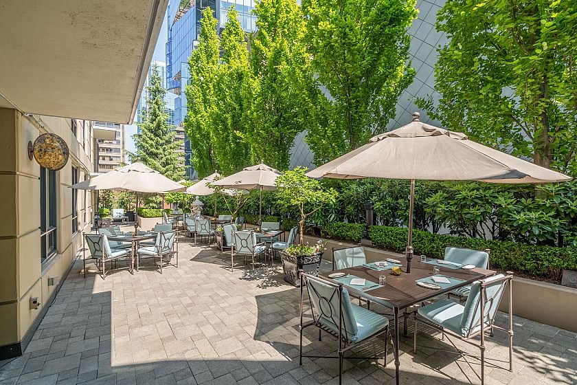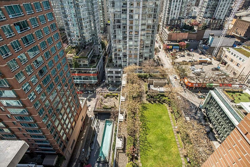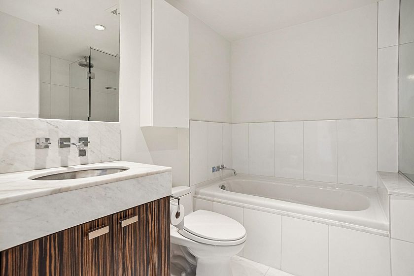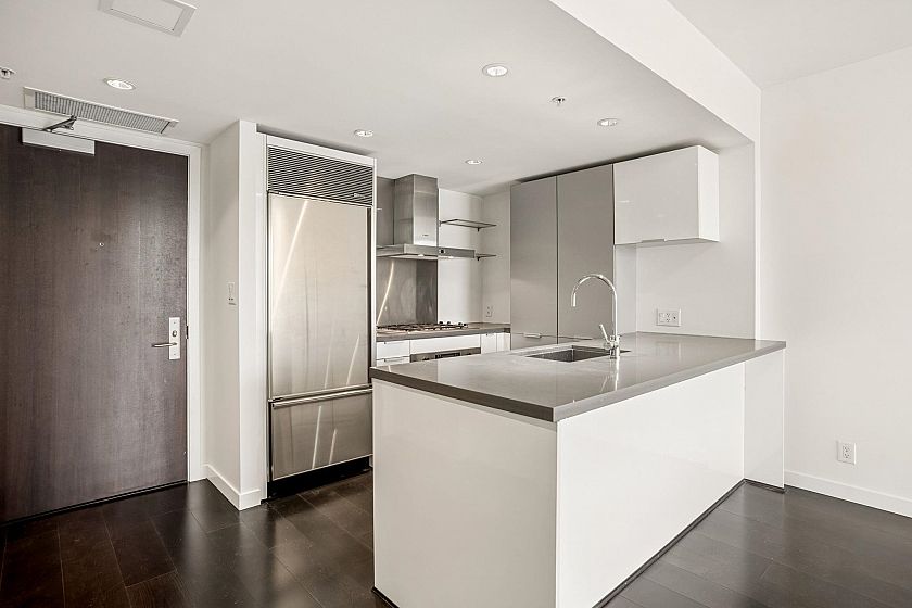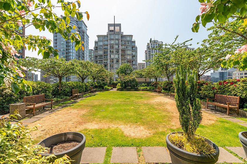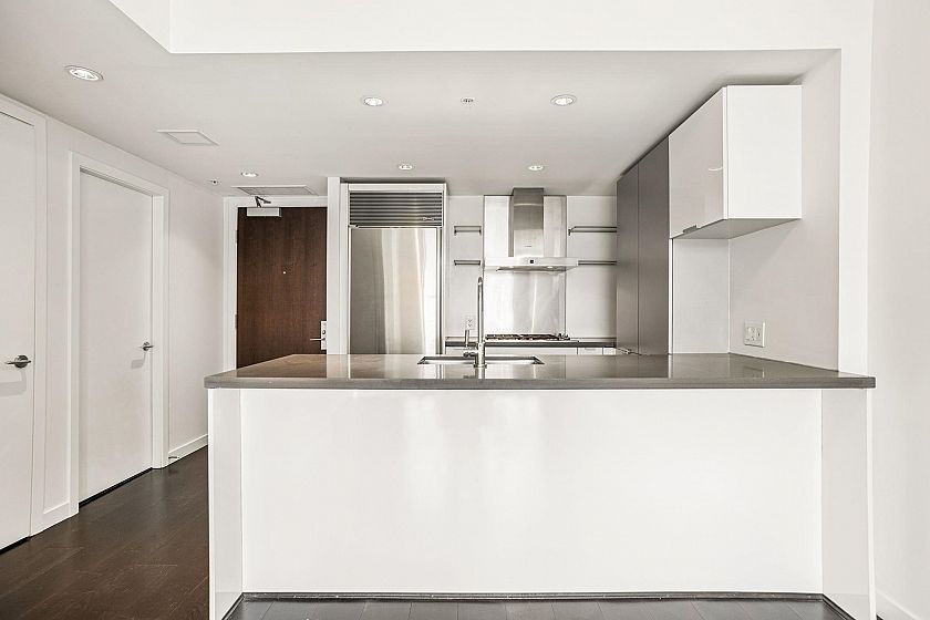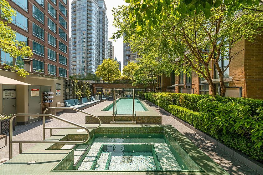 Welcome to L'Hermitage, a signature address where Parisian chic meets West Coast modernism. This spacious 1 BED+DEN+FLEX, offers an ideal 685 SF plan with flexibility & function. The bright DEN with dynamic city views serves as your ultimate solarium home office, while the FLEX easily adapts to a walk-in pantry, customized shoe/coat room or a Peloton studio. The gourmet kitchen is a chef's DREAM, Sub-Zero & Bosch appls, sleek Eggersmann cabinetry & gas cooking for the perfect sear. Retreat to the spa-inspired bath, clad in marble & featuring both a deep soaker tub & separate walk-in shower. HOTEL amenities with concierge, gym, steam room, lounge, rooftop garden & outdoor pool. 100 walkscore with Robson St, Pacific Centre, shopping, entertainment, right outside your door. 1 parking & AC.
