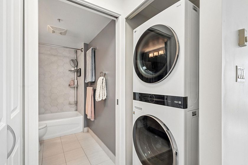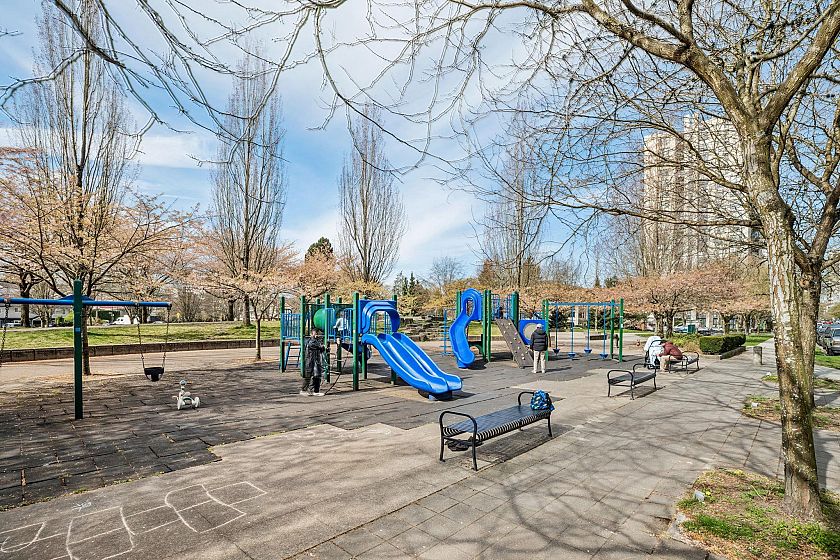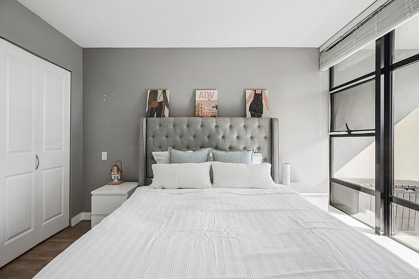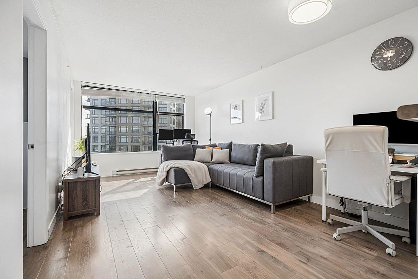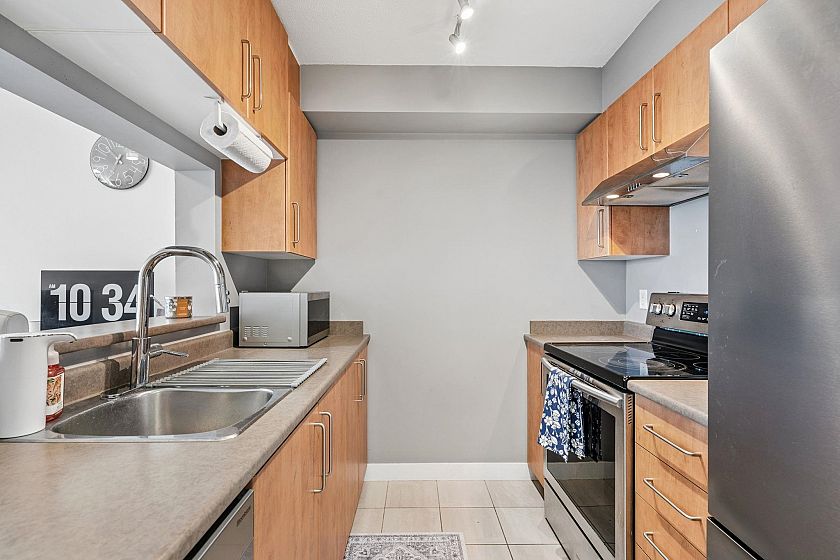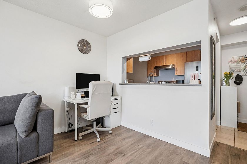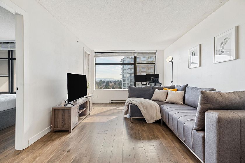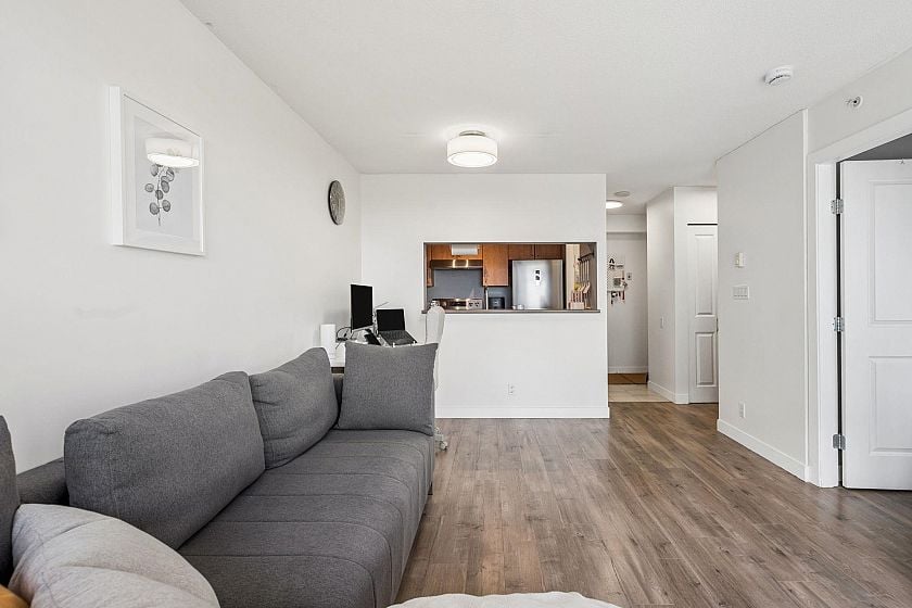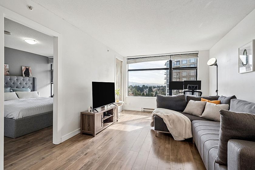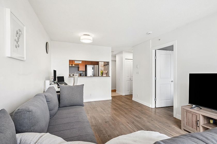 Welcome to Urba by renowned developer Bosa in the heart of Collingwood! This charming 1 bedroom offers stunning city and park views, showcasing the beautiful Vancouver landscape. An ideal layout for entertaining with connected kitchen, dining, and living spaces, plus a large covered balcony. Thoughtfully renovated interior features updated flooring, modern appliances, and a fully refreshed bathroom — just move in and enjoy. Surrounded by parks and close to transit, the area is quiet retreat that provides quick access to the Downtown core.