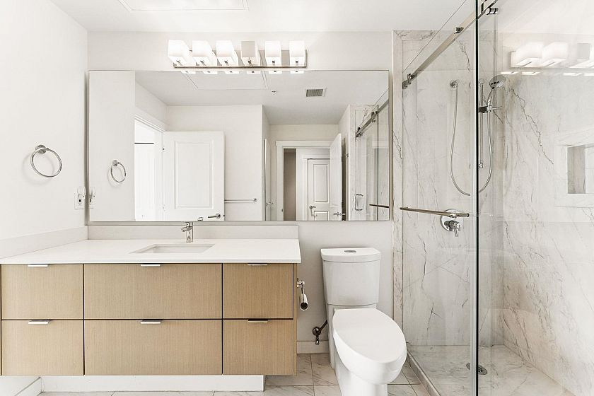 This stunning one-bedroom & den penthouse overlooks Waterfront Park, offering both comfort & luxury. The thoughtfully designed floorplan features soaring 11-foot ceilings, creating an open & airy atmosphere throughout. From all principal rooms, enjoy breathtaking views of the city skyline & Vancouver harbour, making every moment at home truly special. The sleek, modern kitchen is a chef’s dream, featuring quartz countertops, a 5-burner gas range, abundant storage options, & an island with ample seating. Relax in the spa-inspired bathroom that includes a luxurious walk-in shower with ocean & city views & radiant heated floors. The spacious den, complete with a closet, is perfectly suited to serve as a home office or nursery, offering versatile options to accommodate your lifestyle.