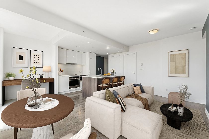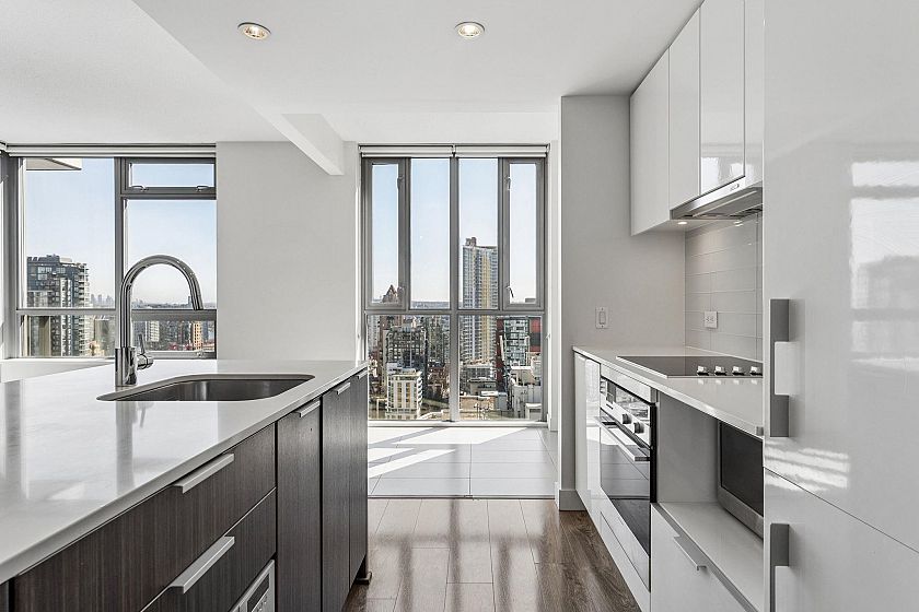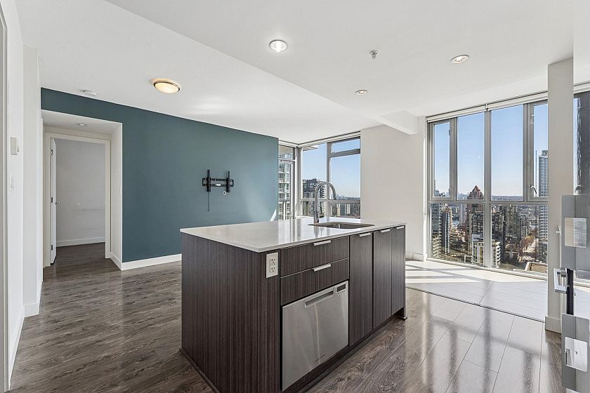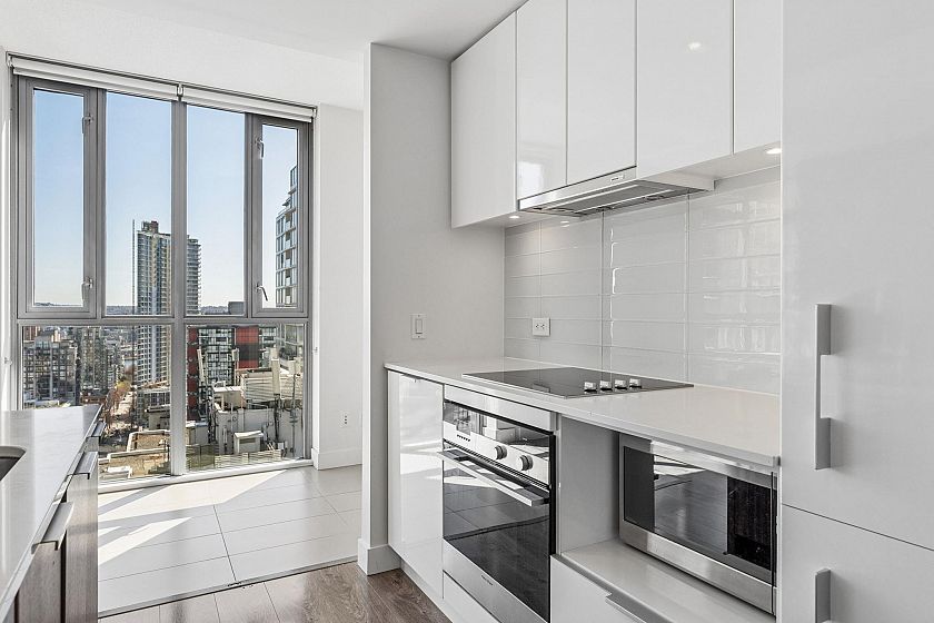 SALT by Concert Properties is a 33-storey LEED Gold residence in Downtown Vancouver. This corner 1- bedroom + den offers a bright layout with over-height ceilings and stunning city, water, and mountain views. The open kitchen features quartz counters, an island, integrated appliances, and a brand new dishwasher. Thoughtful storage includes a walk-in closet with custom built-ins and in-suite storage with shelving and drawers. Steps to Fresh Street Market, the Seawall, and Yaletown–Roundhouse SkyTrain Station. Complete with in-suite laundry, a covered balcony, and oversized parking. OPEN HOUSE: Apr 25 (Sat), 2-4PM