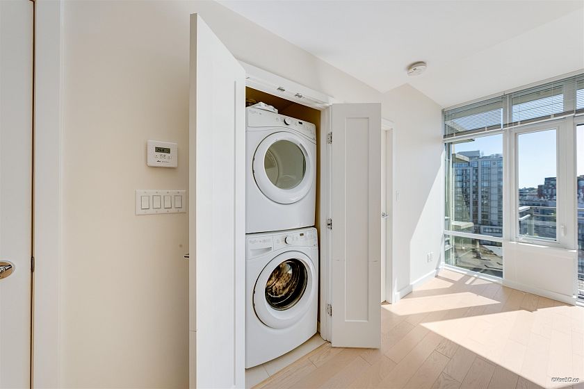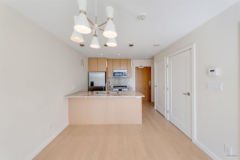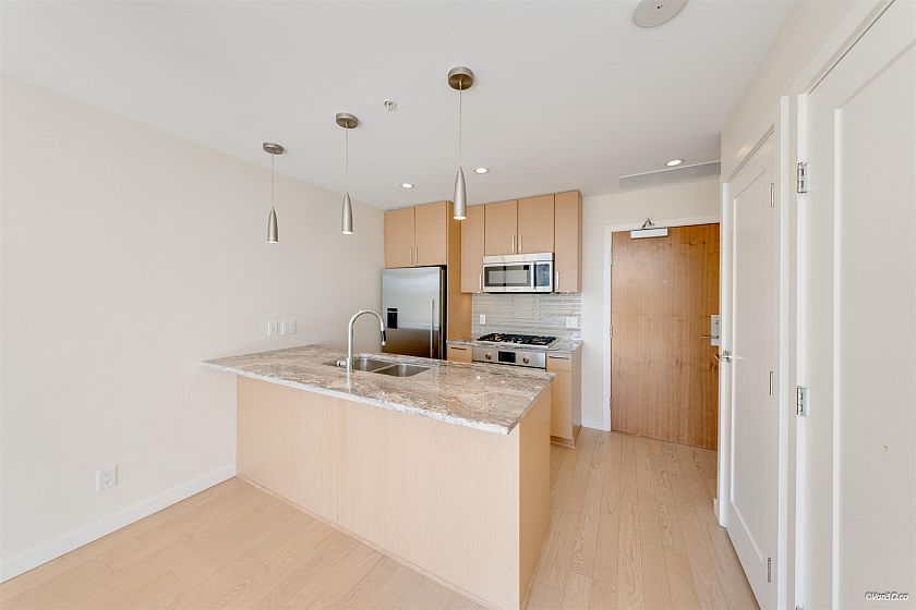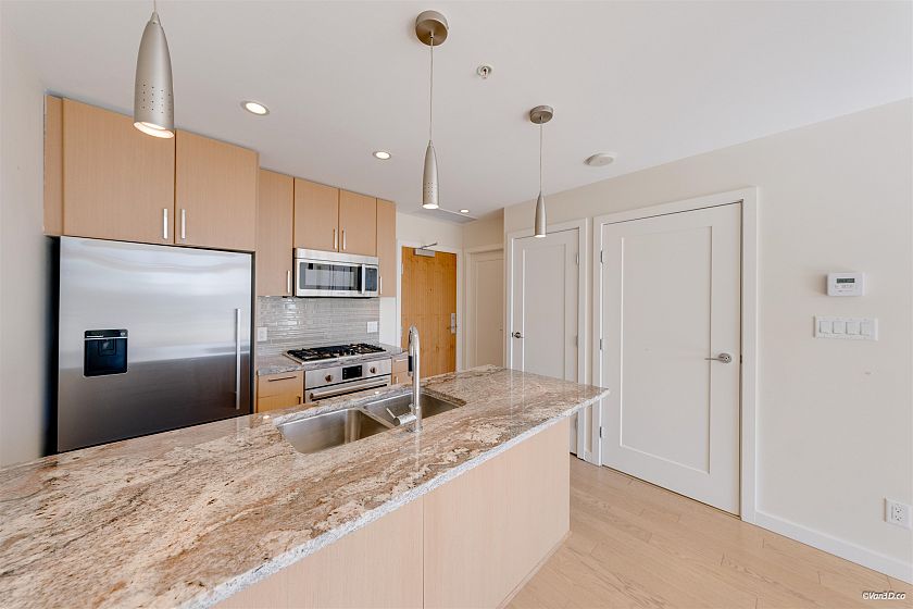 Bright and modern 1-bedroom + den unit at The ONE, ideally located in a vibrant and convenient neighbourhood. This well-designed home features an open-concept layout, floor-to-ceiling windows, and a spacious balcony offering beautiful city views. The contemporary kitchen is equipped with high-quality appliances, sleek cabinetry, and ample storage. The versatile den is perfect for a home office or hobby space. Enjoy premium building amenities such as rooftop pool/hot tub and modern fitness facilities. Just across the street to a wide selection of shops, restaurants, transit nearby, and the waterfront. A perfect opportunity for comfortable urban living or investment.