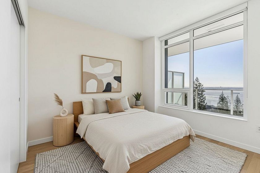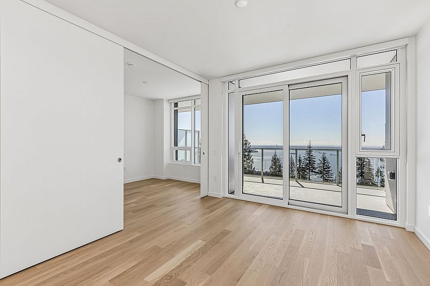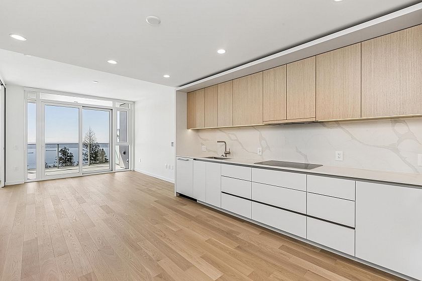 Panoramic Views. Brand New. Uplands Luxury. Welcome to “Hawksley” by Beedie. This 670 sq/ft 1-bed + den is the highest south-facing unit in the building, offering massive views of the Georgia Strait and Vancouver skyline. Refined interiors by Battersby Howat feature 9' ceilings, engineered hardwood, and a Miele kitchen with a 30” induction cooktop. The 200 sq/ft covered balcony includes a gas bib for year-round use. Enjoy A/C via VRF technology and spa-like bathrooms with in-floor heat. Amenities: co-working space, music room, gym, and workshop. Located next to the future Cypress Village, this is a rare chance to invest early in West Vancouver’s newest community. Includes parking, storage, and EV capability. A refined lifestyle that is quiet, active, and perfectly positioned.