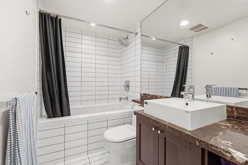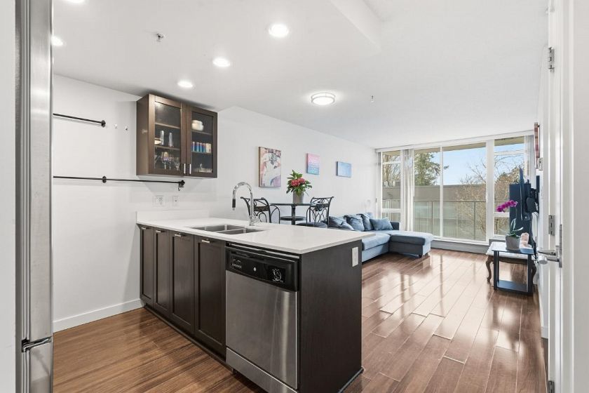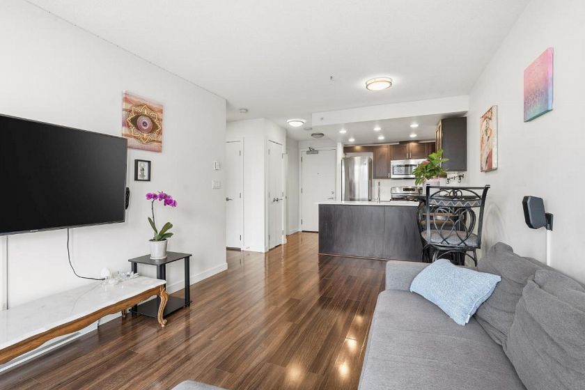 Welcome to Eldorado! This fantastic one bed plus den unit offers the perfect blend of vibrant city living and a peaceful retreat. Situated in a solid 2013 concrete building, the unit is perfectly positioned on the quiet side of the complex. Boasting bright, south facing views overlooking the roof garden. You will love the smart layout and the bonus den, ideal for home office. Open concept kitchen features full size gas stove, perfect for the home chef. Enjoy access to incredible amenities, including a massive, fully equipped two-level gym and a spacious party room for entertaining. Comes complete with one secure UG parking and one storage locker. An unbeatable location close to Skytrain, major bus routes, and shops! Showings by appointment. Call today!