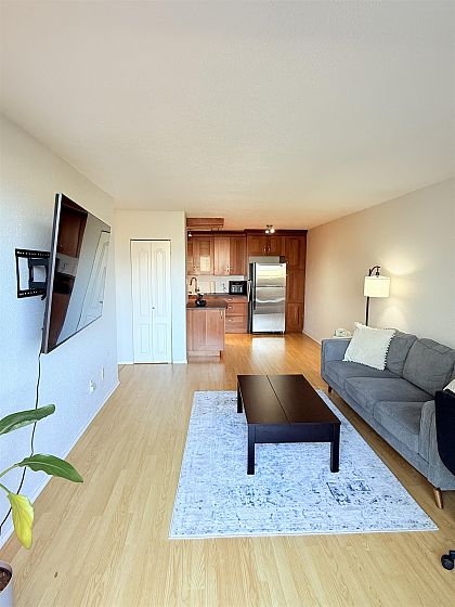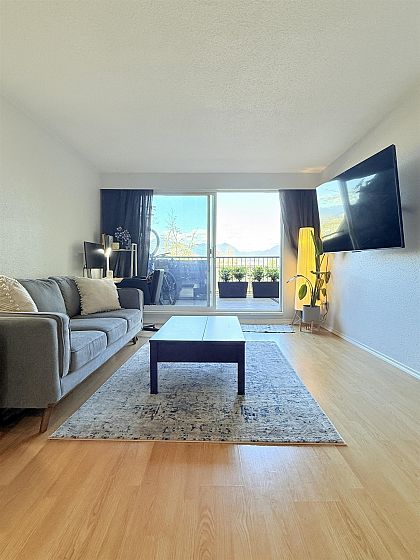 Enjoy a massive 200+ sqft patio with incredible city & mountain views in this spacious 1-bed concrete home. Fully paid ~$44K levy for major exterior upgrades. Features an updated kitchen with stainless appliances, refreshed bath, and in-suite + external storage, Building offers gym, sauna, bike rooms, secure parking, and shared laundry steps from your door, Prime location near Emily Carr, Main St, 0lympic Village,vcc-Clark SkyTrain, and the future Great Northern Way-Emily Carr station. Pets allowed.