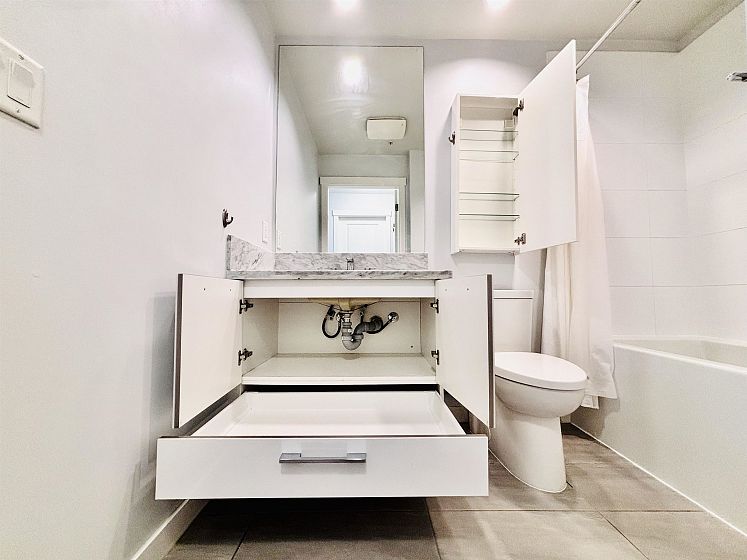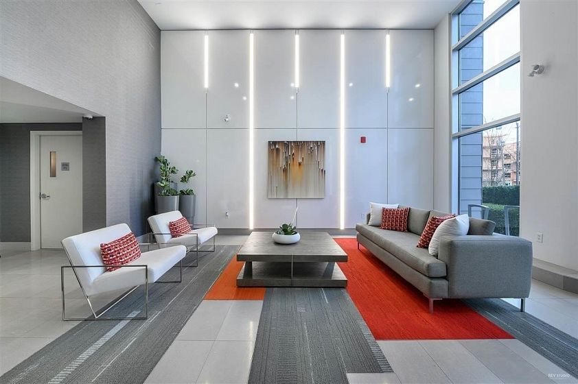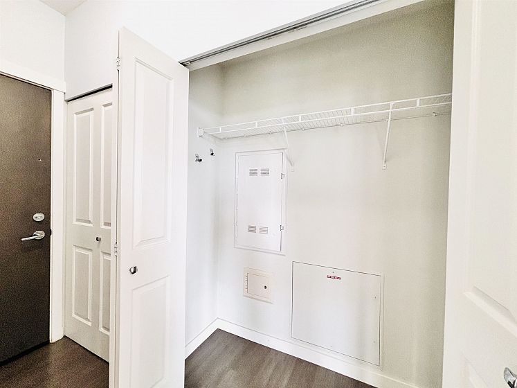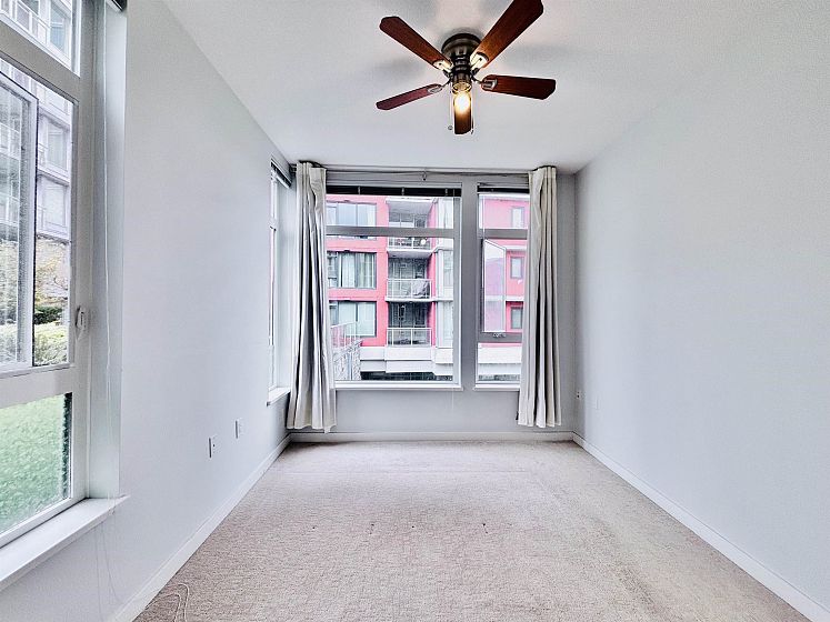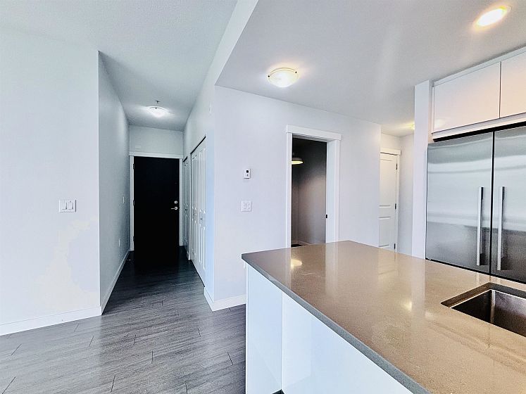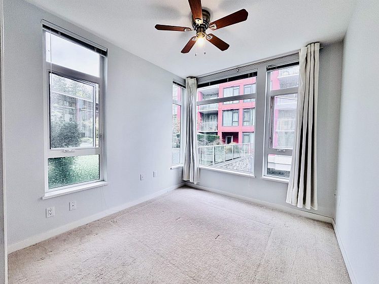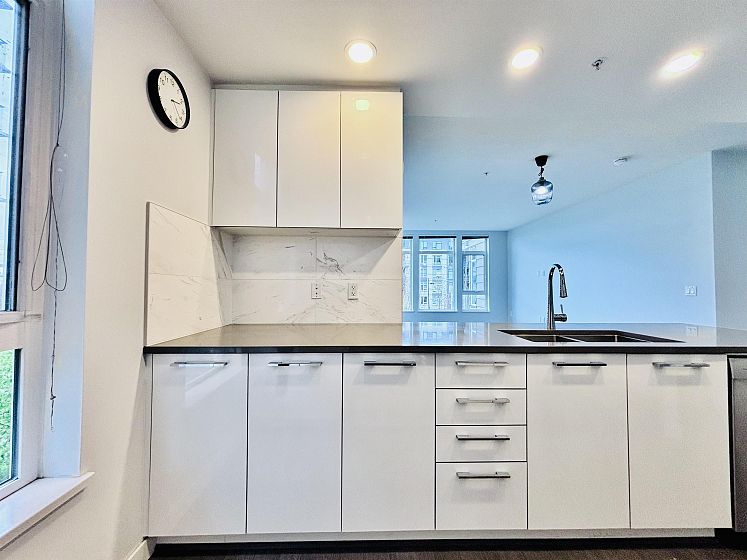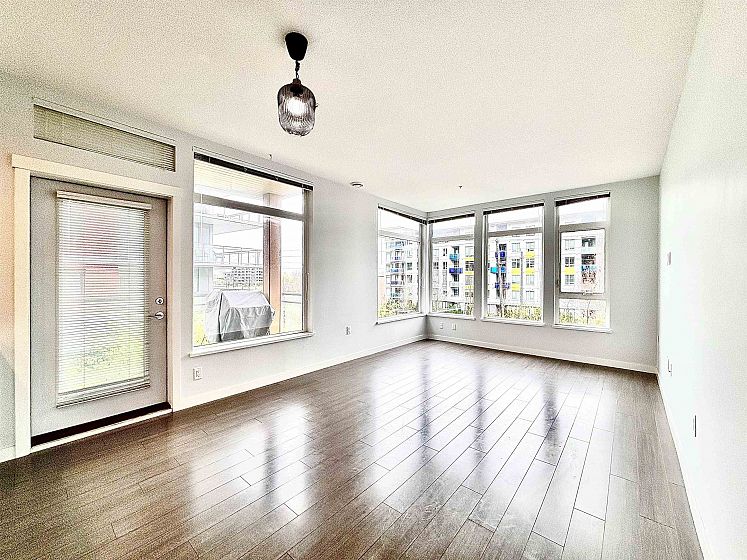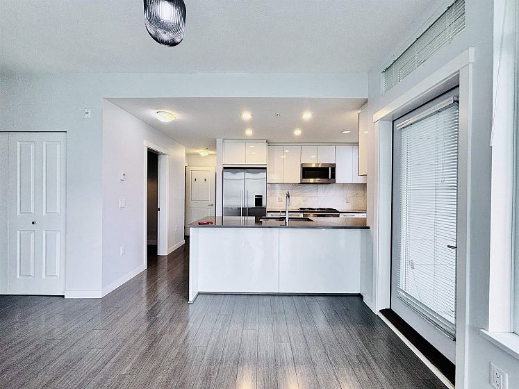 Welcome to Rhythm by Polygon in River District! This bright SE-facing corner unit offers a functional 1 bed + den layout with 732 sqft of living space. Enjoy 9’ ceilings, abundant natural light, and in-floor radiant heating for year-round comfort. The modern kitchen features premium Bosch appliances and sleek finishes. The versatile den is perfect for a home office. Amenities include a fitness studio and gathering lounge. Comes with 1 parking and 2 storage lockers. Located in a vibrant waterfront community close to shops, dining, and trails. Measurements are taken from BC Assessment, Buyer to verify if important.