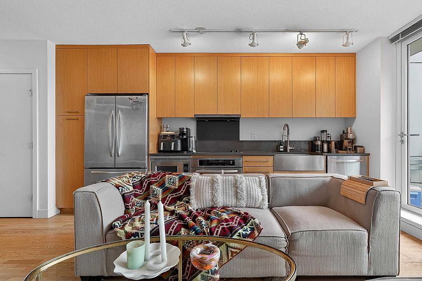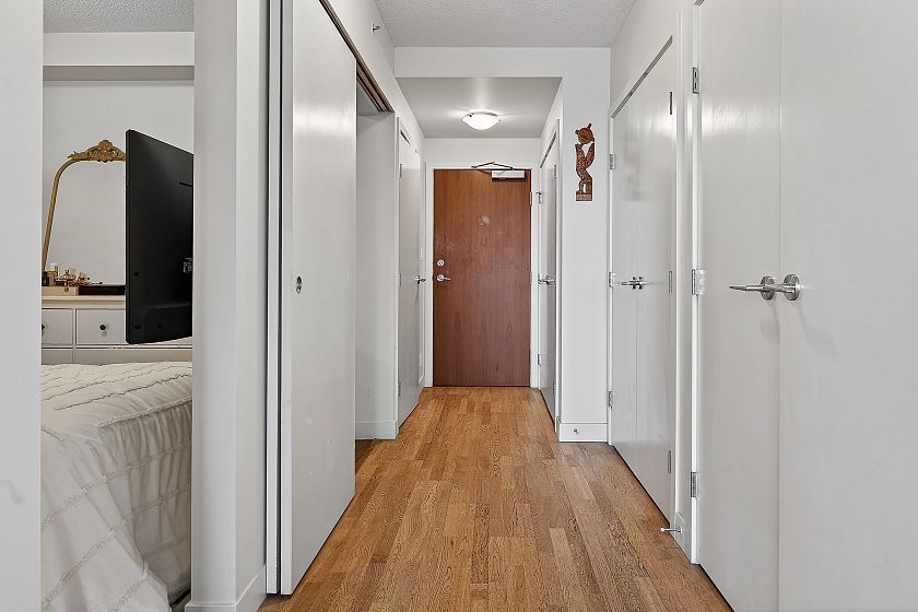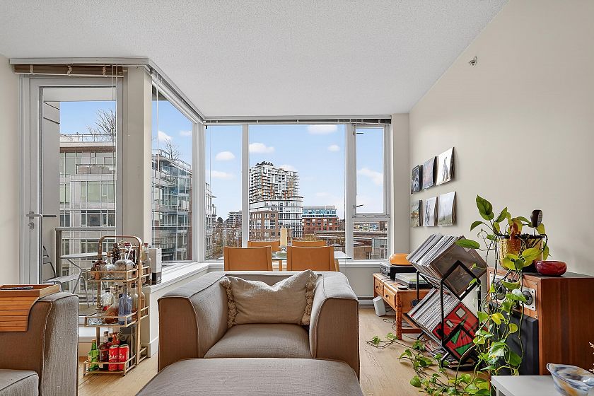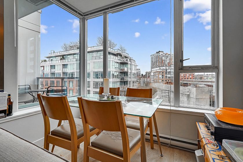 Welcome to District! A bright, open upper-floor 1 bed in the heart of vibrant Mount Pleasant — perfect as a city pad or savvy investment. Smart, efficient layout w/ over-height ceilings, engineered hardwood, stone-slab counters & premium s/s appls in the sleek linear kitchen. Defined dining zone & spacious living area open to a sun-drenched balcony. Oversized thermal windows pour in light all day & frame sweeping urban views. Restful bdrm w/ great closet space, stylish bath & in-suite laundry. District boasts a showstopping panoramic rooftop deck w/ BBQ area, fitness centre, resident lounge & lush courtyard — concrete, pet-friendly & just steps to Main St. See virtual tour link for MUCH more.