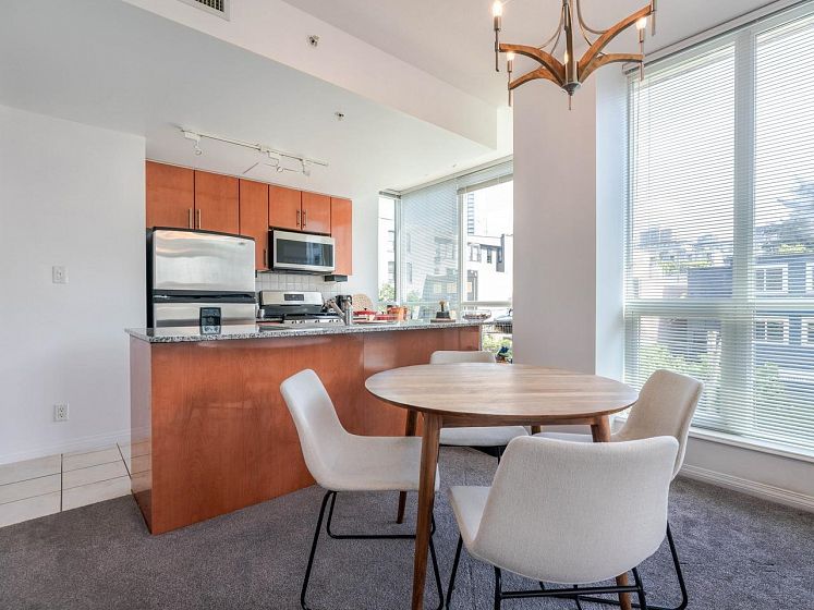 This bright & airy one bedroom corner unit offers HUGE floor to ceiling windows. Big open floor plan to the living & dining areas that opens to a larger than average wrap around balcony perfect for those summer BBQs. Large primary bedroom that will accommodate a king size bed. The Pinnacle Athletic Club offering fantastic pool, gym and yoga facilities and is just across the street is included in the maintenance fees. This unit is literally steps to Lonsdale Quay, shops, Shipyards, brewery district, awesome restaurants, and the sea bus. Pets and rentals are welcome (no restrictions). 1 car secure parking and large storage locker.