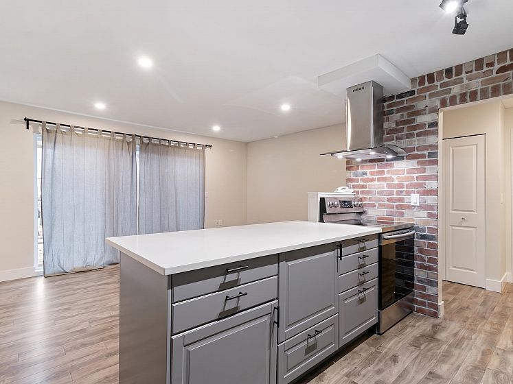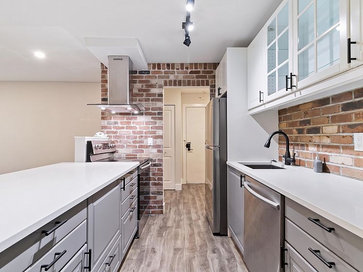 Step into this beautifully renovated 1 bed, 1 bath home in vibrant Hastings Sunrise. This 521 sqft residence features a rare 200 sqft private south-facing patio—perfect for relaxing and entertaining. The open-concept layout showcases a brand-new gourmet kitchen with island, stainless steel appliances, and exposed brick. Floor-to-ceiling windows fill the space with natural light, complemented by warm modern flooring. The bedroom offers a stylish barn door, walk-in closet, and cheater ensuite. Located steps to Commercial Drive, breweries, parks, and transit. Recent building improvements include, new balconies, windows, doors, renovated lobby, new roof and underground parking garage membrane improvements. Includes 1 parking and storage. OPEN HOUSE Saturday April 25th from 2pm to 4pm