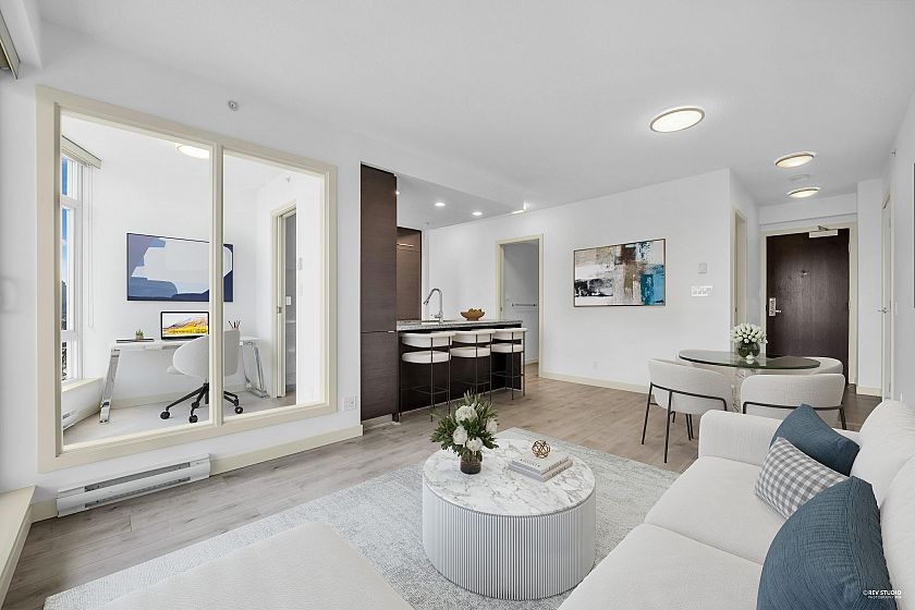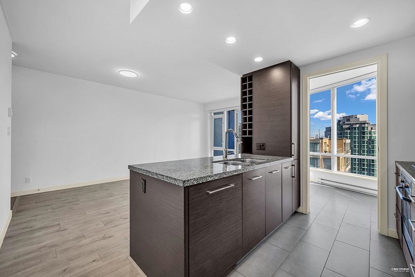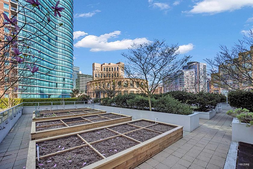 Stunning SE facing 1 bed + office/solarium + den/flex room + balcony at the prestigious Atelier w/ updated flooring & lighting! Open floor plan w/ floor-to-ceiling windows & an abundance of natural light w/ beautiful city views. Chef's kitchen w/ Liebherr fridge, granite countertops, s/s appliances, gas cooktop & ample storage. Excellent well-run strata w/ large CRF & expansive amenities including concierge, lounge, large gym, steam room, meeting room, tranquil 7th floor garden, playground & visitors parking. Central location just steps to Robson St, grocery stores, Pacific Centre, BC Place, Rogers Arena, Vancouver Public Library, restaurants, shops, Skytrain & Canada Line, transit etc! Pet & Rental Friendly. OPEN HOUSES Saturday April 25 & Sunday April 26th 1 to 2:30pm! A MUST SEE!