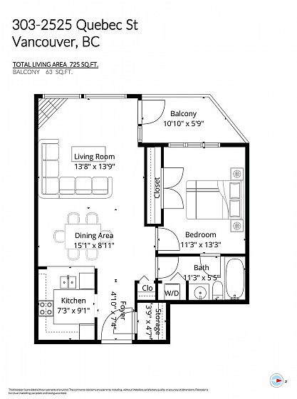 Welcome to Cornerstone in the heart of Mount Pleasant—a stunning 1900s church conversion thoughtfully restored combining heritage architecture & modern design! Featuring open-concept layout w/ excellent flow & high ceilings perfect for both everyday living & working from home. The spacious living & dining area fills w/ natural light & opens onto a private balcony. Modern kitchen features sleek cabinetry, quality appliances & ample storage. The bedroom offers great closet space & room for a king sized bed. Includes parking & storage. Located in a well-maintained, sought-after building, on a tree-lined street steps from Main Street, breweries, parks & upcoming Mount Pleasant station. An exciting opportunity for first-time buyers, professionals, or investors in this vibrant community!