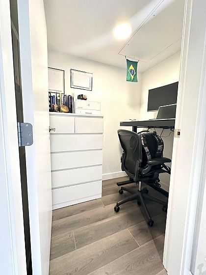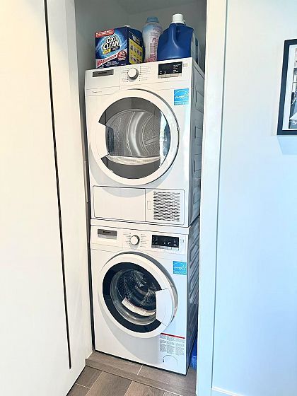 Welcome to Fraser Commons – Modern Living at Its Best! This 2-bedroom, 2-bath+den home offers a perfect retreat with its quiet interior location, abundant natural light, and serene views. Relax and unwind on your private balcony, enjoying moments of peace and beauty. The unit is thoughtfully designed with high-end features, including a premium gas range, stylish quartz countertops, contemporary European cabinetry, and laminate flooring throughout. The bedrooms are generously sized, and the bathrooms are elegantly designed for a luxurious touch. Fraser Commons is a testament to quality and innovation. This property includes 1 parking space and a storage locker for your convenience. Located steps away from transit, shops & daycare. Make this stunning Fraser Commons unit your home!