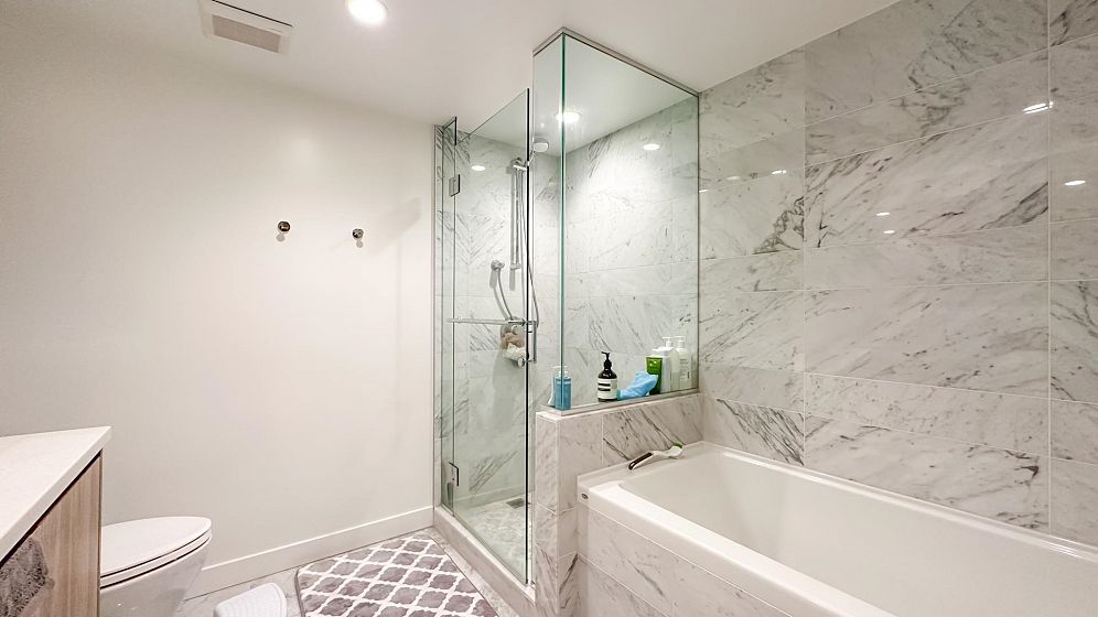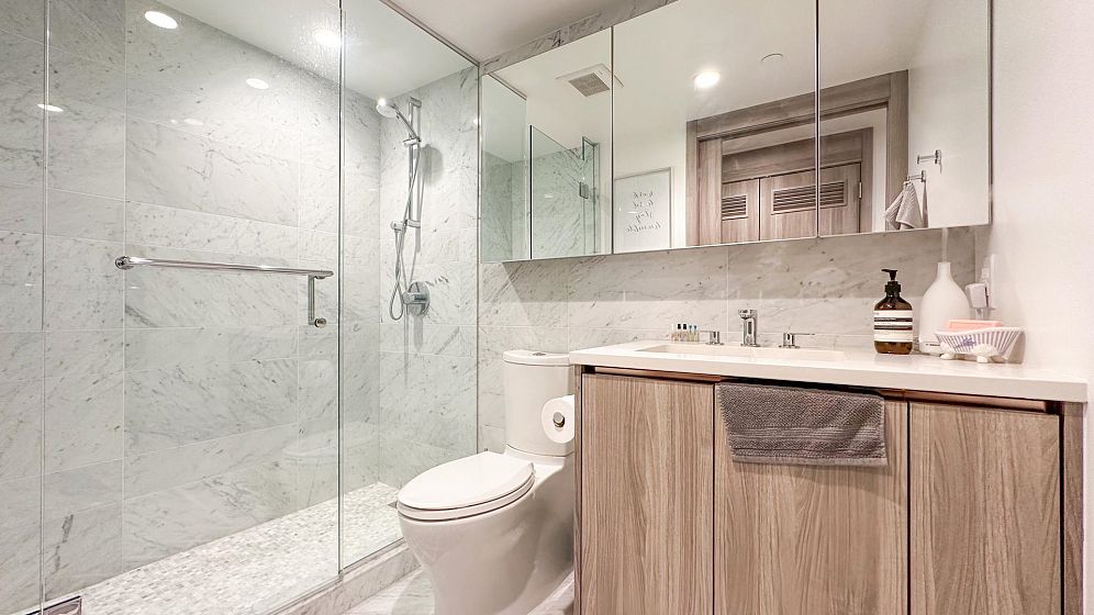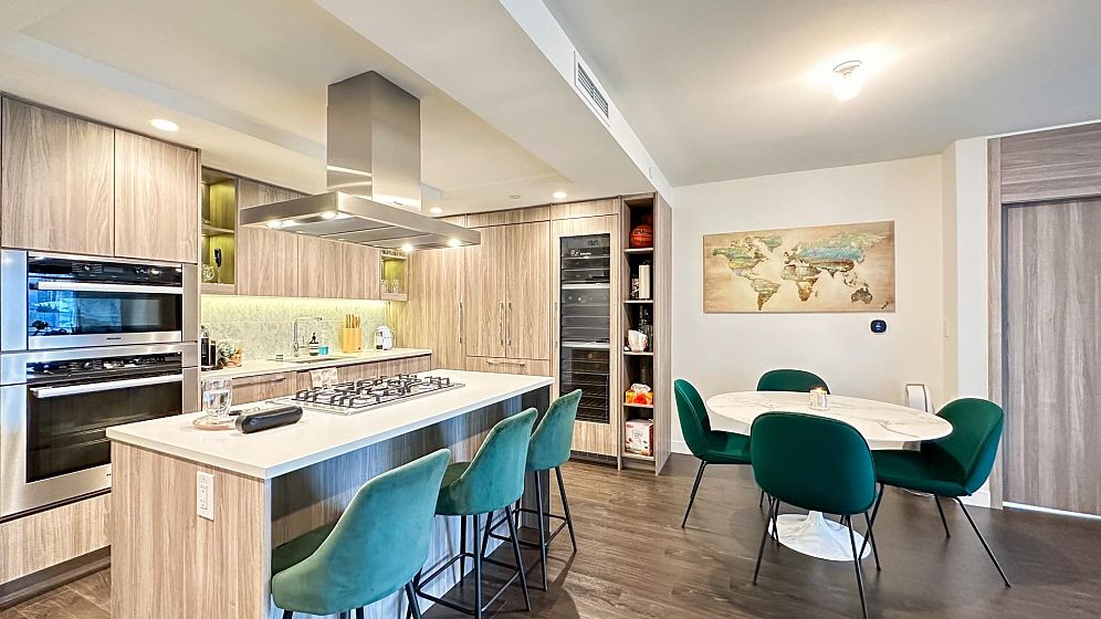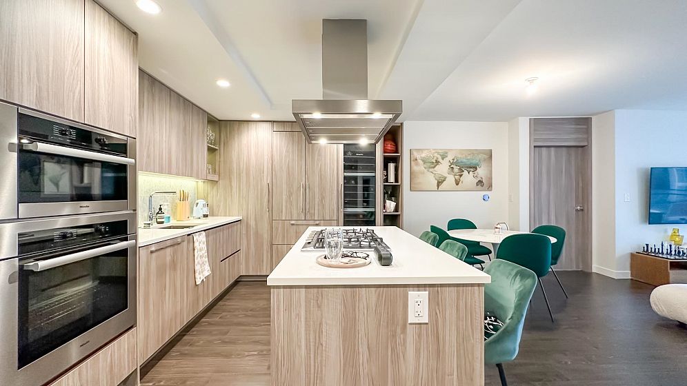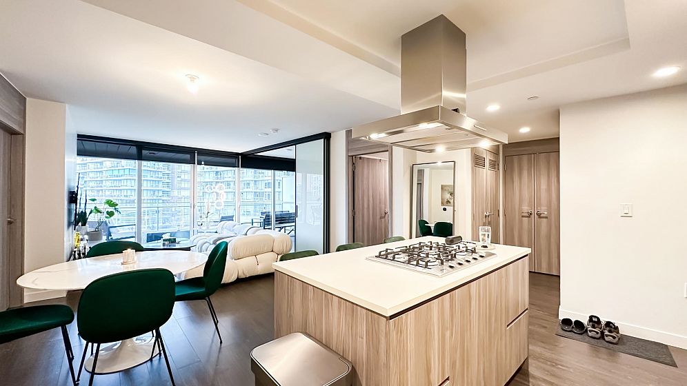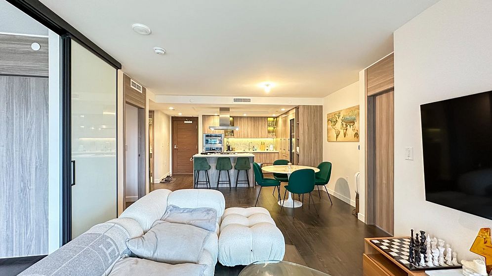 Prestigious & high-luxury Avenue One by Concord Pacific in the heart of the Olympic Village. This 2 drm + den/office open plan home has been meticulously thought out. Kitchen has high end Miele appliances. Fully equipped Outdoor Living Room featuring outdoor solar shades, porcelain tile flooring, gas outlet, hose bib and wood-look soffit ceiling with heaters and lighting for all 2 bedrooms. Open Concept floor plan maximize the incredible view. High end amenities include gym, concierge and touch less car wash ! Step outside and reconnect with nature. Perfectly situated to take advantage of Hinge Park, shoreline.