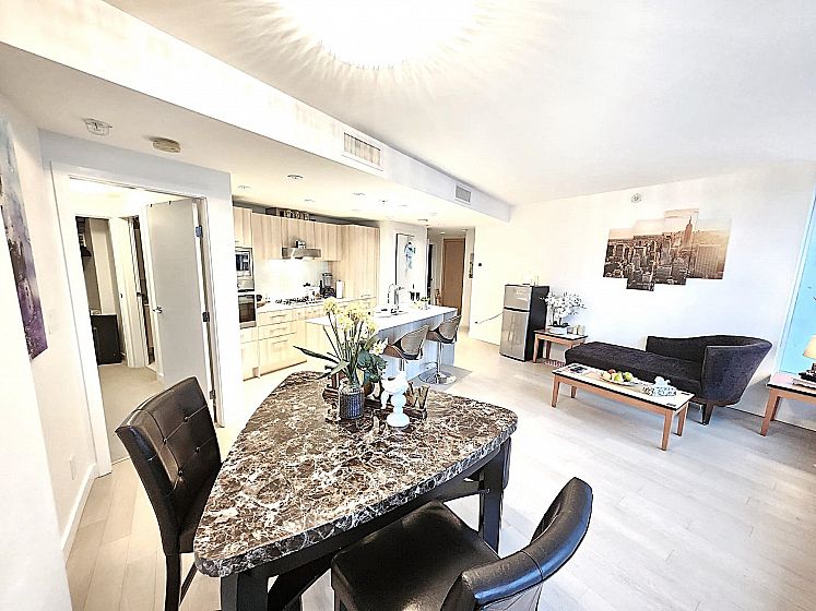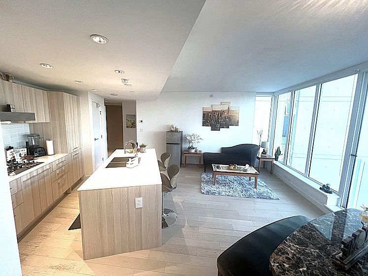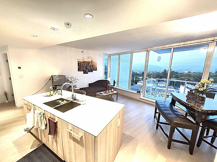Welcome to Kensington Gardens by reputable Westbank. This immaculate NE corner 2 bed, 2 bath plus den home with astonishing City and Mountains view won't deceive you. Features include integrated Miele appliances, quartz counter tops, engineered hardwood floors, Blomberg washer and dryer, A/C, and a large balcony for entertaining with North Shore mountain views. Enjoy the building's 5 star amenities: Concierge, heated outdoor pool, hot tub, sauna, gym, theatre room, study rooms, meeting room, party-room with full kitchen, pool table, and kids play area. Centrally located right above T&T Supermarket, only 12 mins away from Nanaimo Skytrain Station and steps away from public transit and an abundance of restaurants. Don't miss your chance to own this beautiful gem!