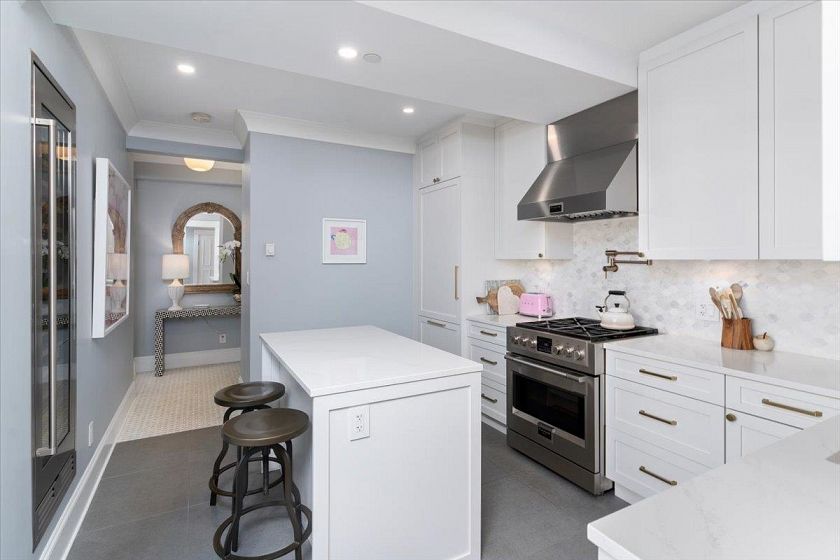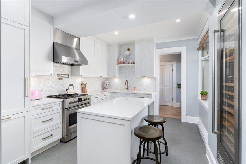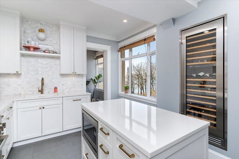 Welcome to Vancouver’s most iconic waterfront Heritage building—Kensington Place! Gracefully positioned along English Bay, this exquisite 1,597sqft residence seamlessly blends timeless elegance with modern luxury. Thoughtfully renovated to preserve its 1912 charm, this 2-bed, 2-bath home is rich in character throughout. The chef’s kitchen boasts a Fulgor range, integrated appliances & built-in wine fridge. Expansive living & dining areas with ample natural light that comfortably accommodate full-sized furniture, making it ideal for downsizers. Enjoy ocean views from balcony or take a stroll along the Seawall, just steps away. This impeccably restored, well-managed building offers a guest suite, large storage locker & 1 parking.