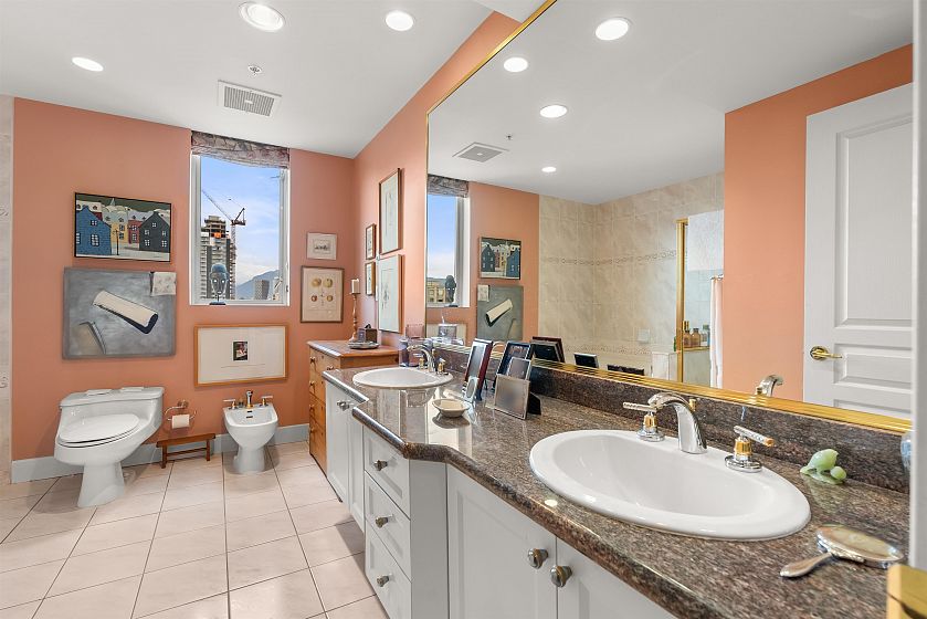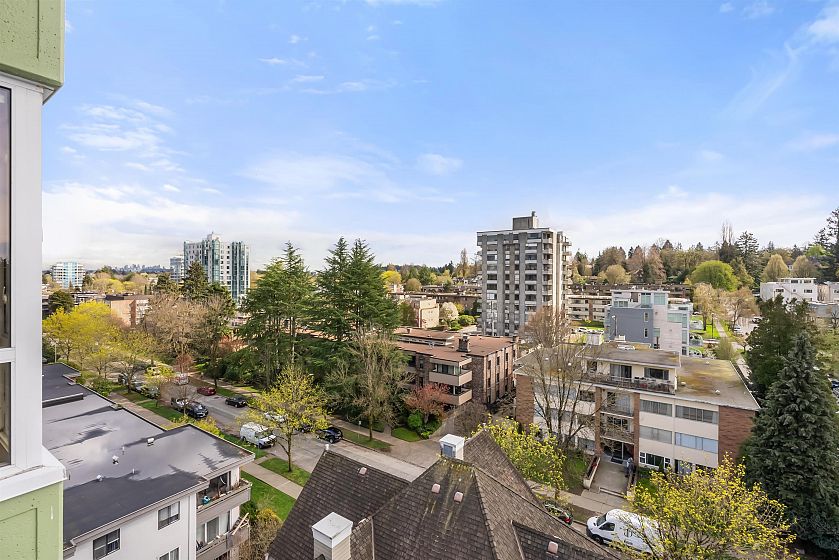 When you walk off the elevator directly into this home with 1880 sqft of living space, you'll know that you're in something special. 360 degree views over the entire city, spacious living areas and 4 patios, one on each corner. Meticulously well kept, this 2 bedroom 2.5 bathroom home has high end finishes, modern updates and clever design such as the library which opens into living room. Large bedrooms both with ensuites and walk-in closets. This home is suited both for entertaining and comfort. Solid concrete construction ensures peace and privacy. Rare extras such as the underground 3 car private garage and a private storage room that is over 80 sqft. Located close to South Granville shopping and entertainment, and centrally located to all areas of the city and downtown. Call to view!