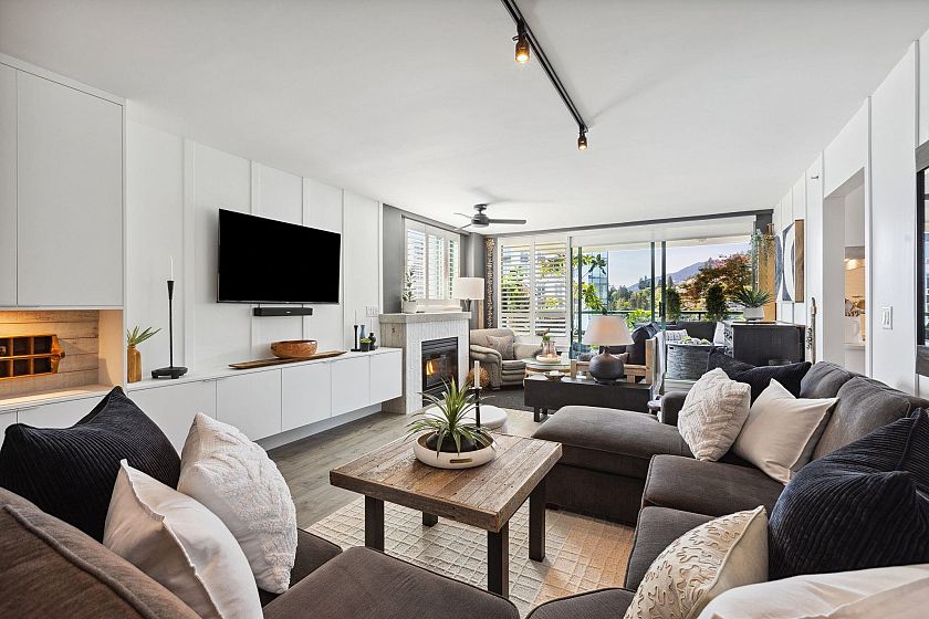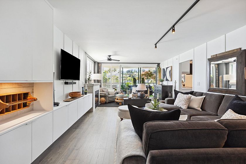 Luxe, light-filled, and completely reimagined - this 2 bed + solarium, 2 bath NW corner suite at The Westroyal blends sophistication with everyday comfort. Expansive windows fill the home with natural light and frame stunning ocean, mountain, and city views. Thoughtfully redesigned in 2021 with over 1500 sq ft of indoor/outdoor living, this home features your own private garden oasis deck, a sleek chef’s kitchen, spa-inspired bathrooms, custom millwork and closets, quartz counters, designer lighting, a cozy gas fireplace and elegant shutters throughout. Resort-style amenities include a pool, hot tub, sauna, gym, party room, and resident manager. Includes 2 parking stalls and storage. Steps to the seawall, Park Royal Shopping Centre, dining, and transit.