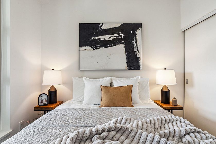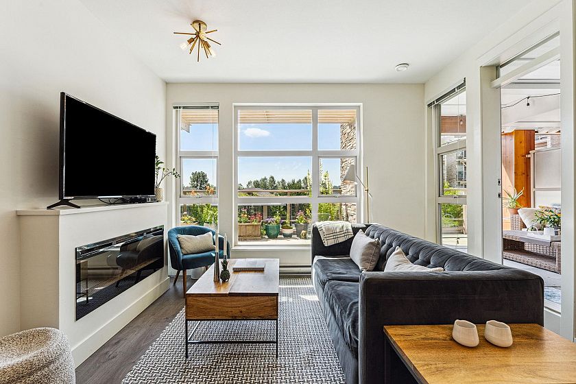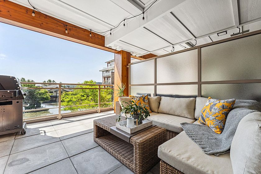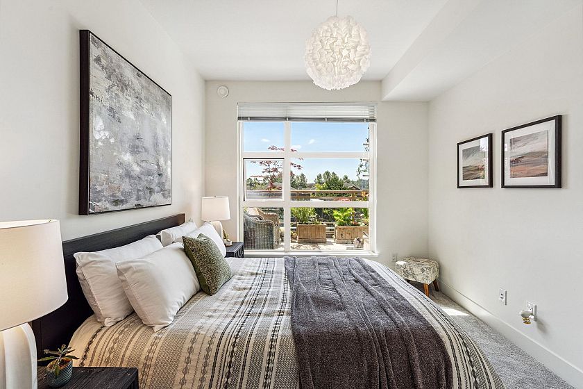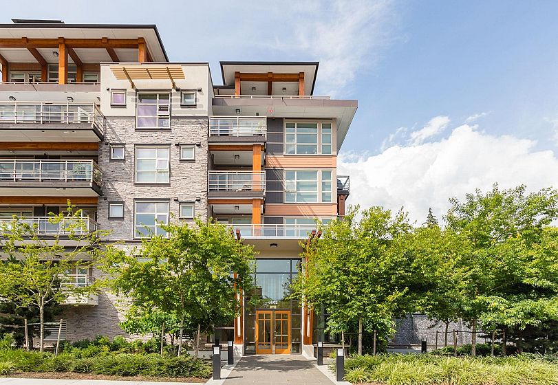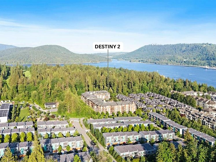 Welcome to the best of Destiny 2! This sought after south-facing 2 bed, 2 bath home feels like waterfront living, with a stunning 290 sq ft partially covered balcony overlooking a one-of-a-kind infinity pond. Inside, enjoy a sleek open layout with stainless steel appliances, gas range, large island, laminate flooring, and over-height ceilings. The spacious primary bedroom features a walk-through closet and spa-like 5-piece ensuite. Both bedrooms are ideally separated for privacy. 2nd bedroom is generously sized and right next to a 2nd - 4 piece bath. 2 side-by-side parking stalls, locker, in-suite laundry & pet-friendly community. Resort style amen incl a well-equipped gym, clubhouse, theatre, paddle /kayak stge and dog wash. Tranquility meets luxury. Open this Sat 2-3 & Sun 2-4.