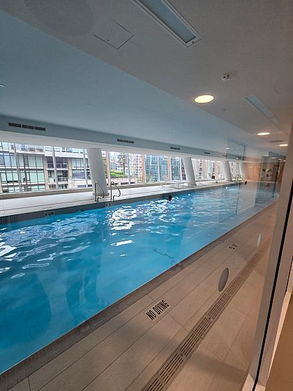 It's YOUR DREAM HOME. SE facing, bright and spacious 2 bdrm plus den offers the perfect balance of style and luxury. The open-concept kitchen with Gaggenau appliances is a chef's paradise. Enjoy air conditioning, a built-in safe, and a smart home system for ultimate comfort. Gleaming wide-plank engineered hardwood floors and floor-to-ceiling windows fill the space with natural light. Two balconies offer stunning views of the city, Burrard Bridge, marina and ocean. Features 24/7 concierge, 30,000 sqft clubhouse with fully equipped fitness facility on 7th floor, full-length indoor pool w/ steam room, sauna, hot tub, study lounge, snooker room, outdoor BBQ area and private party room. Located moments away from shopping, transport, parks & the iconic Seawall - you can truly have it all here.