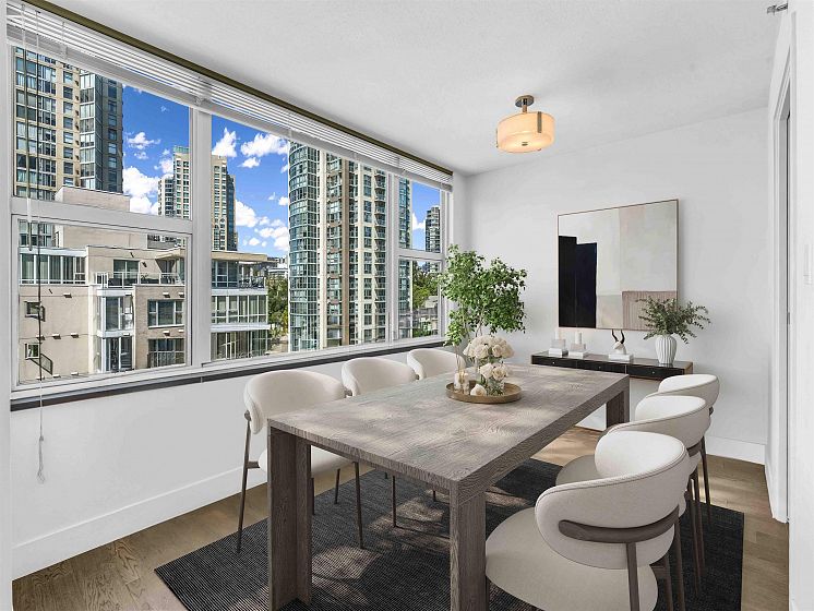 Welcome to 888 Beach. Great opportunity to secure a home in the desirable Beach District. Close to the Seawall, English Bay, Granville Island, Downtown and many restaurants/shops in trendy Yaletown. This complex has a 24-hr Concierge, gym, indoor pool, sauna, EV (shared) and a private inner courtyard with greenery/reflecting pool. This 2 bed, 2 bath southwest-facing condo has a view of the marina and features engineered HW floors throughout with a gas fireplace in the living room. The kitchen has granite countertops and updated S/S appliances. The primary bedroom is large enough for a king-sized bed. Includes 2 parking & 1 storage. Some photos are virtually staged.