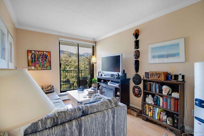 For more information, click the Brochure button. Enjoy the stunning views of the City, Ocean and Lionsgate Bridge and beyond from this beautiful 2 bedroom, 1.5 bathroom sub-penthouse. Updated kitchen includes stainless steel appliances and granite counter tops, walk in shower and in-suite laundry. Enjoy large North- East South balcony, plus 2nd North facing balcony to enjoy cool summer evenings and North shore mountain views. This concrete building offers 1 parking spot in secured underground lot. Conveniently situated in the Heart of Ambleside. Just blocks away from bus and within walking distance to shops, doctors offices, pharmacies, library, beach, parks, walking trail. Unicorn of Lioncrest - best of all worlds.