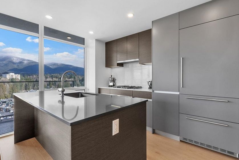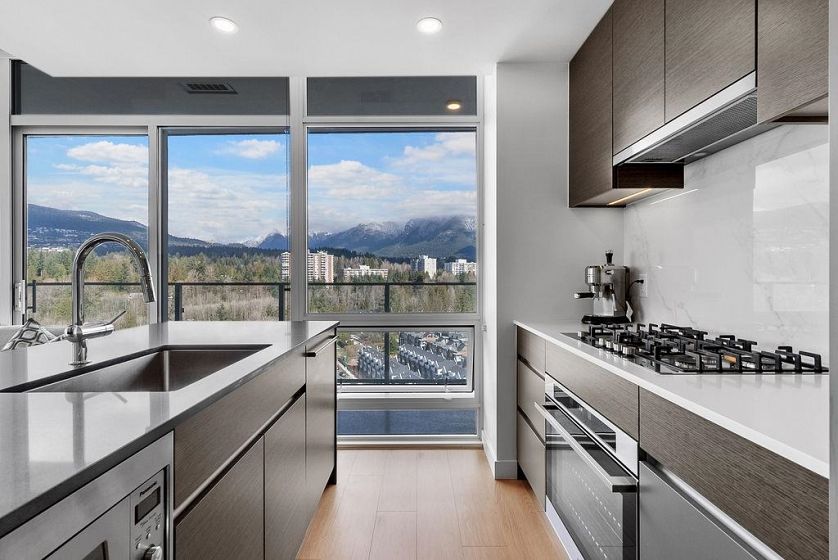 VIEWS VIEWS VIEWS! Sweeping views of the North Shore Mountains, Ocean and Lions Gate Bridge! Stunning 2 bedroom & Den + 2 bathroom North West corner unit at the highly anticipated, The Sentinel building, in West Vancouver. Luxurious features include a huge wrap-around balcony w/ gas hookup, 9-ft ceilings, floor-to-ceiling windows, and A/C for year-round comfort. Gourmet kitchens include large islands for entertaining, AEG appliance package, 5-burner gas range, quartz stone counters and backsplash. Spa-like bathrooms with custom vanity mirrors & Grohe faucets. Resort-style amenities include concierge, party lounge, fitness center, sauna and steam room, hot tub, yoga studio, outdoor lounge and 3 guest suites. This CORNER, VIEW AND PRIVATE apartment is the most ideal place to call HOME.