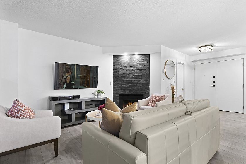 If you’ve dreamed of downtown living without giving up warmth, space, or a touch of nature — this is your moment. Welcome to 301–789 Jervis Street, a rare corner home that truly has it all: over 1,000 SF of open, sun-filled living with large windows, a cozy gas fireplace, and a beautifully updated renovation that feels instantly inviting. The seamless flow from kitchen to living to your private 400 SF wraparound patio — framed by lush greenery — makes this home perfect for both quiet mornings and lively evenings with friends. You’ll love the sense of calm, privacy, and light in every room. Includes 2 side-by-side parking stalls, storage locker, pet-friendly building, and no rental restrictions. Steps to Alberni & Robson.