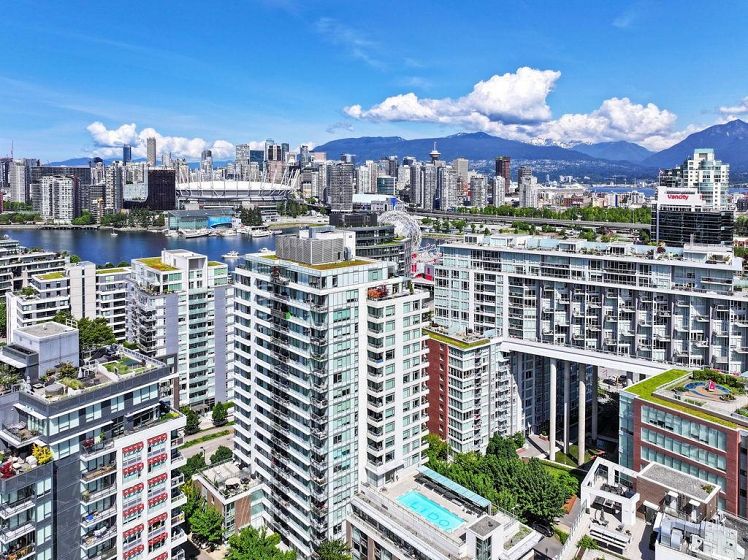 Welcome to Lido by Bosa, a highly sought-after address in the heart of Olympic Village. This stunning 2-bed, 2-bath home offers amazing False Creek views from its 15th-floor perch, with an open-concept layout designed for both comfort and style. Over $60K spent on recent renovations including updated bathrooms, a re-imagined kitchen with premium porcelain slab counters and modern fixtures, plus beautiful maple hardwood flooring throughout. The private balcony provides the perfect spot to unwind and take in the city skyline. Enjoy central Air Conditioning, in-suite laundry, and high-end appliances. Amenities include a heated rooftop pool, fitness centre, and full-service concierge. This home combines upscale urban living with unbeatable convenience.