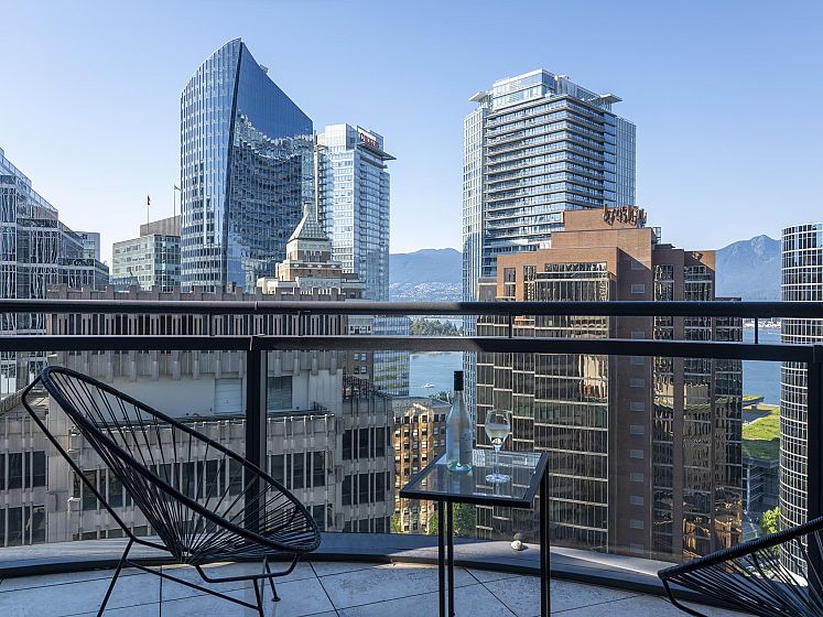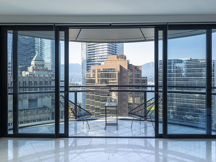 Live at the prestigious Jameson House, 1755 sq. ft. of living space, 9' ceilings, 2 bedrooms, a den/office, 2 bathrooms, and a sizable terrace with views of the mountain. This entertainer's dream home boasts a huge open layout and a stunning, architect-designed kitchen with Sub-Zero and Gaggenau appliances. Enjoy 24/hr concierge, auto valet parking, and a prime Coal Harbour location next to Canada Place. Expertly constructed by Bosa Properties and meticulously maintained.