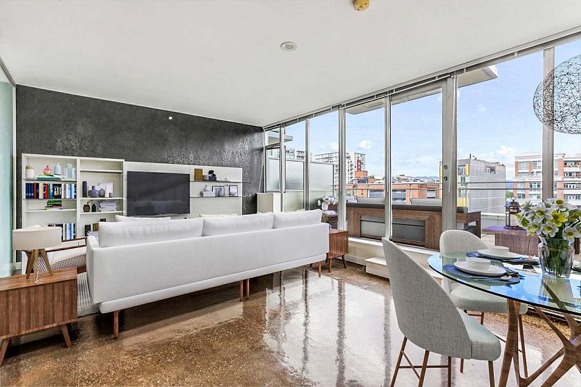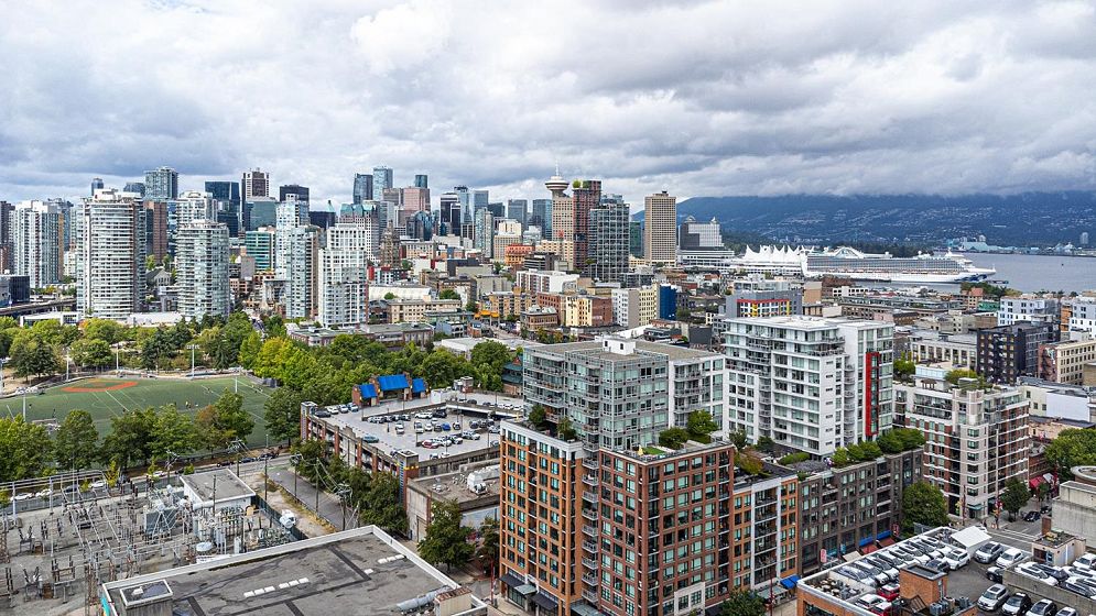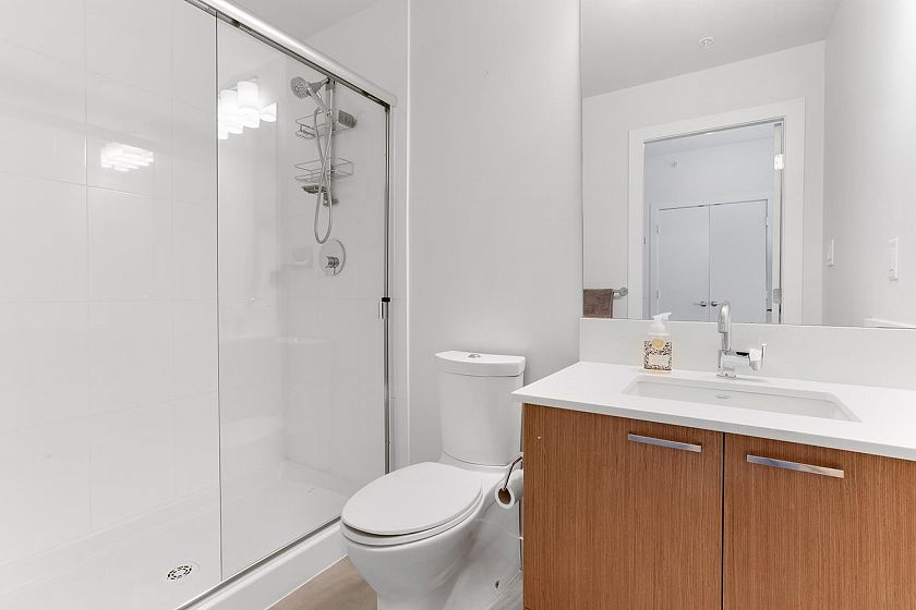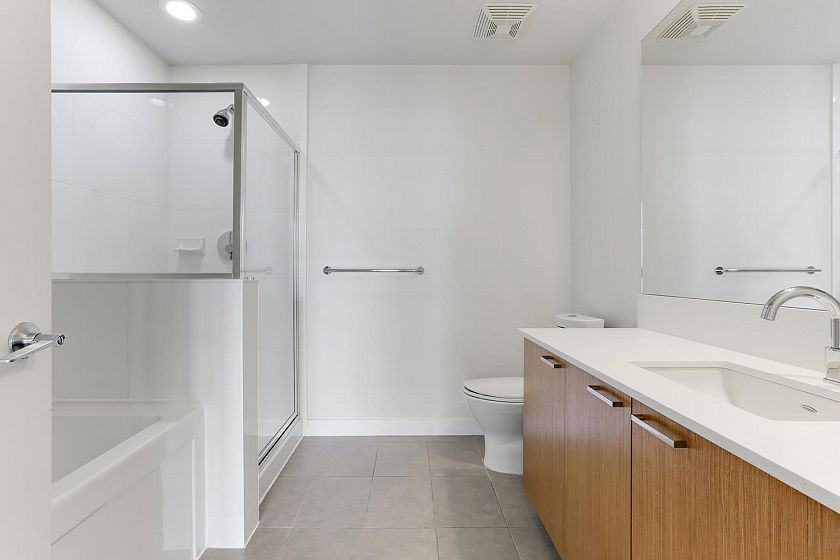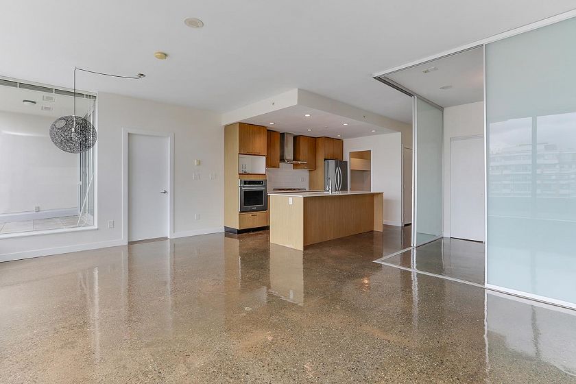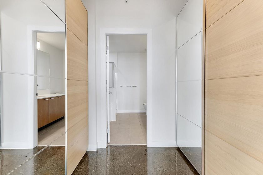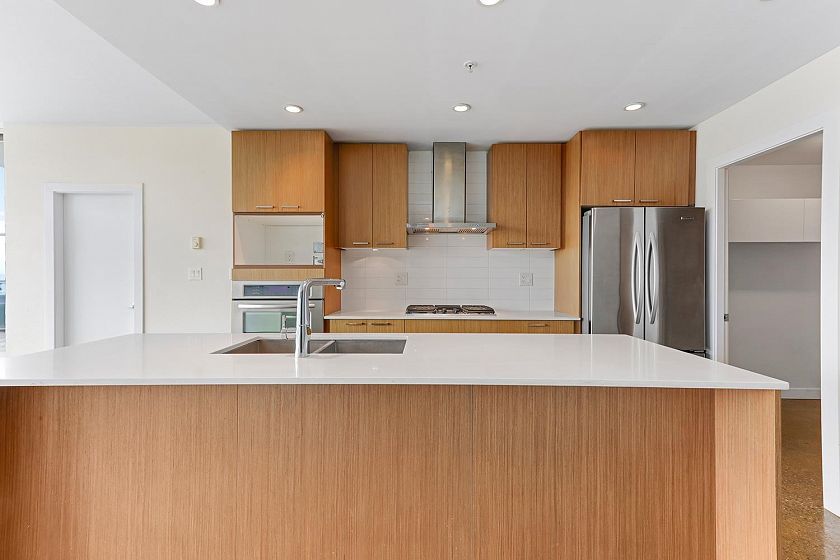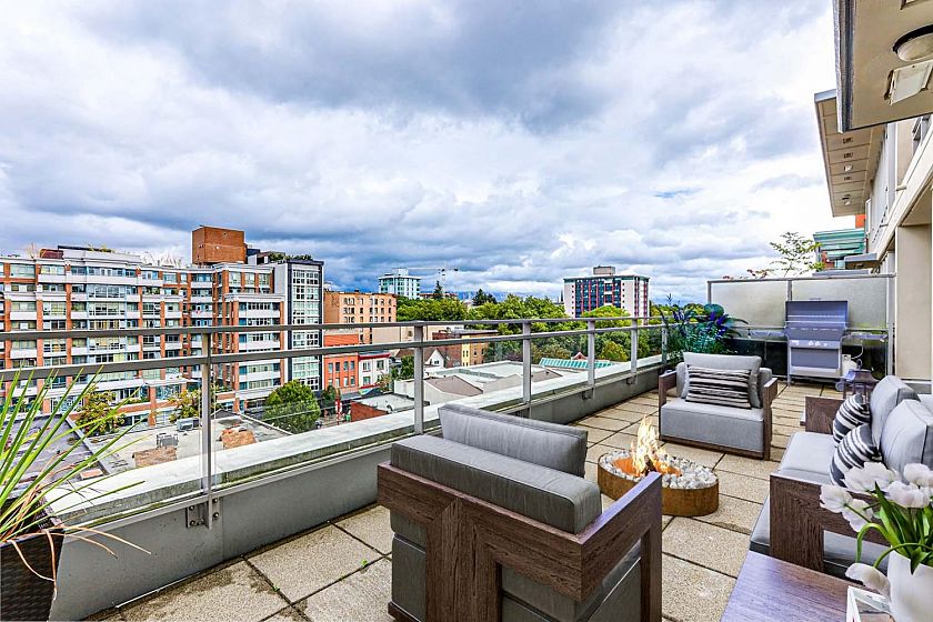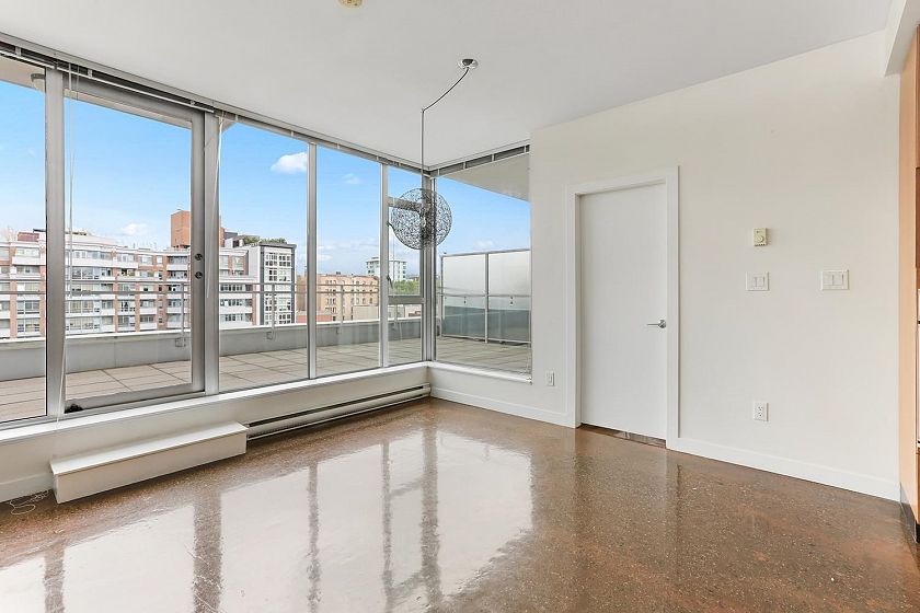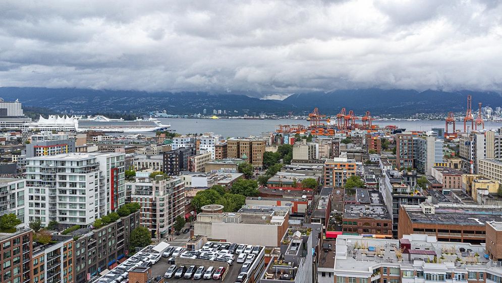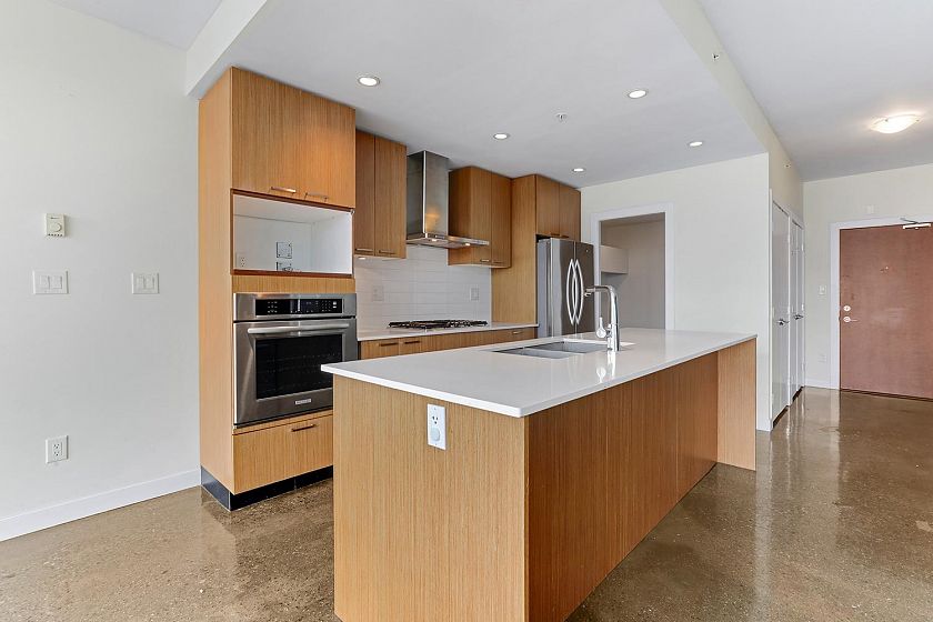 Welcome to V6A where Chinatown & False Creek Flats come together. Located on the quiet North side of the building offering views of city & mountains, this 1,094 sqft 2 bed, 2 bath & flex space unit is looking for a new owner. This Sub Penthouse unit offers a large 355 sqft serene outdoor patio for getting away in the middle of the city. Home features solid composite stone countertops, stainless steel appliances, teak wood veneer cabinetry, & a kitchen island making this unit a chef's dream. Enjoy the convenience of a walk-in pantry or office, gas range & thick reinforced concrete floors & ceilings throughout. The unit boasts a dining area, walk-in closet in the primary & a spa like bathroom w/ separate shower & deep soaker tub offering comfort & style under one roof. OH sunday 1-130 sept21