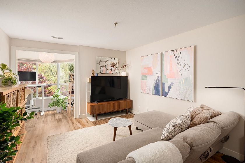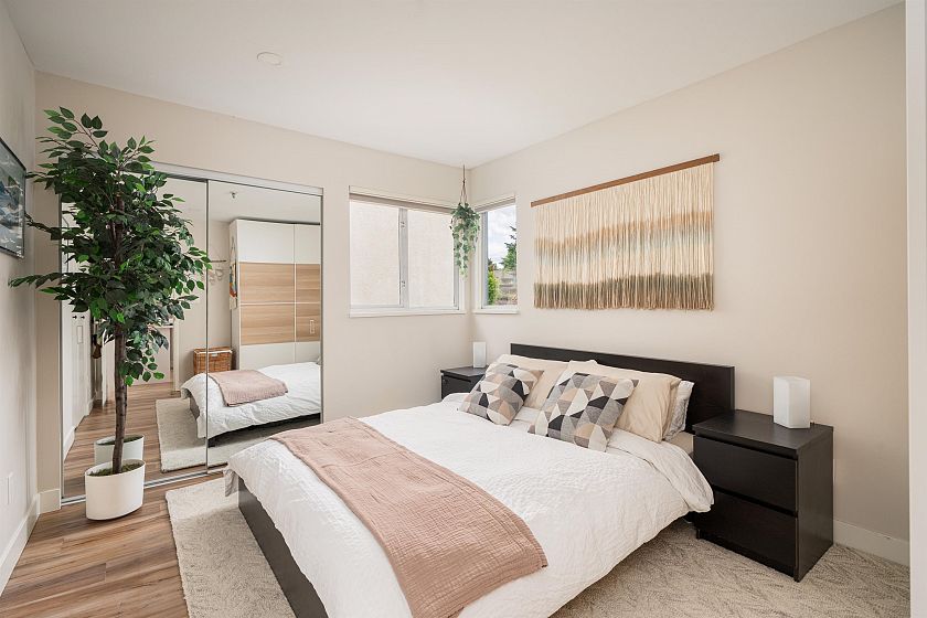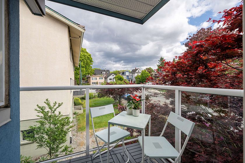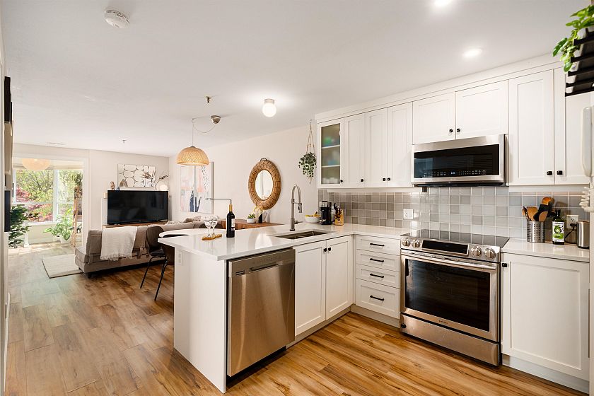 Southeast, CORNER home of a RAINSCREENED, boutique building, this airy condo offers PRIVACY and NATURAL LIGHT. This beloved home has 2 bedrooms and a sunny open den (solarium) and is FULLY RENOVATED: vinyl plank throughout, updated appliances, cabinetry, extended quartz counters, extra hidden pantry, a deep soaker tub, newer washer/dryer & hot water tank, and Mysa thermostats. There's nothing to do but move in! Belong to a CLOSE-KNIT COMMUNITY in a hidden gem neighbourhood near Pandora Park, New Brighton Pool, restaurants, breweries, Donald's Market, Tillicum & Hastings Schools, and DT. In winter, cozy up in front of your wood burning fireplace. 1 parking.