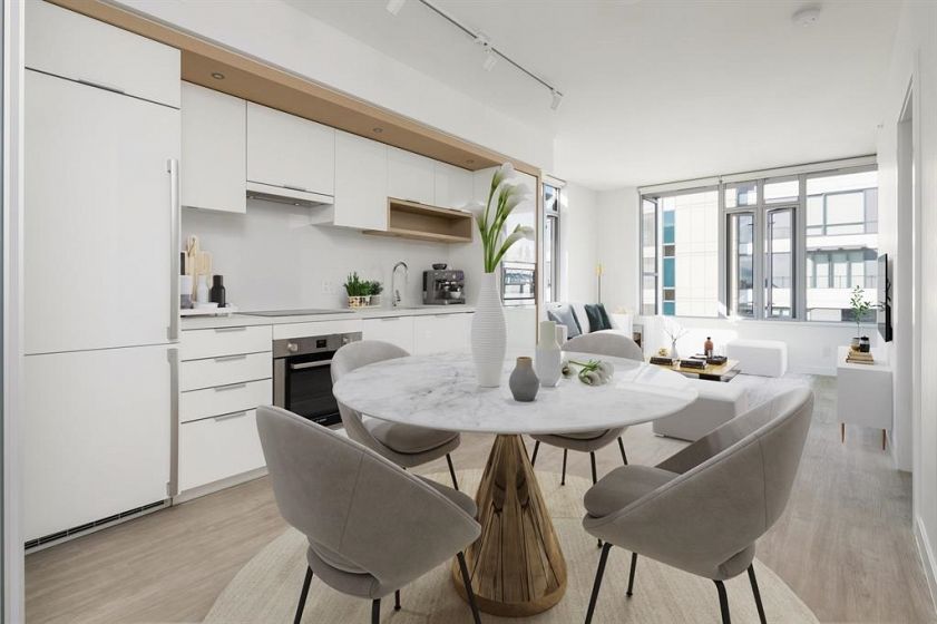 Welcome to this fabulous corner unit at VODA at the Creek offering views, natural light throughout the day and spectacular skyline at night! This home features 2 bedrooms, 2 bathrooms and a den - an ideal space for a home office, reading nook or for extra storage. A modern open layout with seamless flow that is perfect for both comfortable living and entertaining! Enjoy outstanding building amenities including a fully equipped fitness centre, a stylish amenity room for gatherings, and secure parking. Also located conveniently with steps to the Seawall, Olympic Village, Dining and Transit.