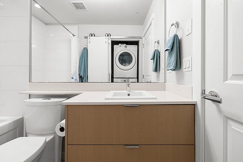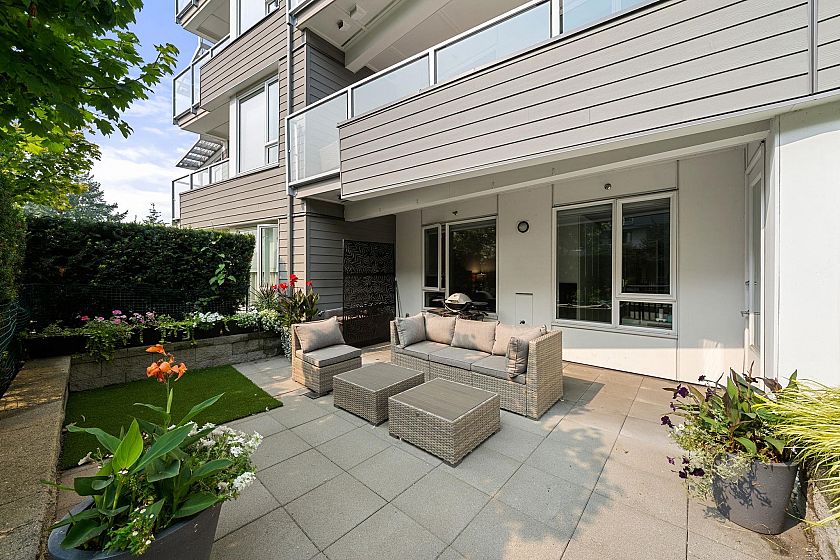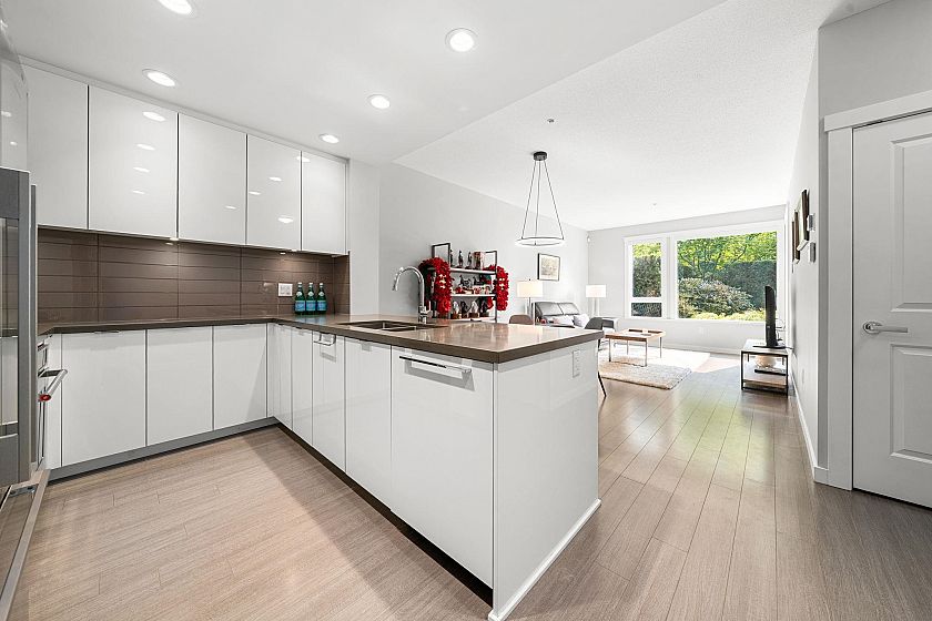 Stunning 2-bed, 2-bath garden-level residence at West Quay by Polygon in vibrant LOLO! Enjoy your own private ground level entry plus a private sunny 300+ sq ft SE facing patio, ideal for pets and relaxing. The airy open-concept plan features large bright windows, and a mix of laminate and carpet flooring throughout. A chef’s kitchen comes complete with quartz counters, stainless steel appliances, 5-burner gas stove, and excellent storage. The primary suite offers a generous walk-in closet and spa-inspired ensuite with dual sinks and an oversized shower. Added conveniences include in-suite laundry, radiant in-floor heating, 1 parking, 1 storage locker. Building amenities inlc Gym, meeting room, bike room, and an outdoor courtyard. OpenHouse Sat 1-3pm, or by appoint. Don't miss out!