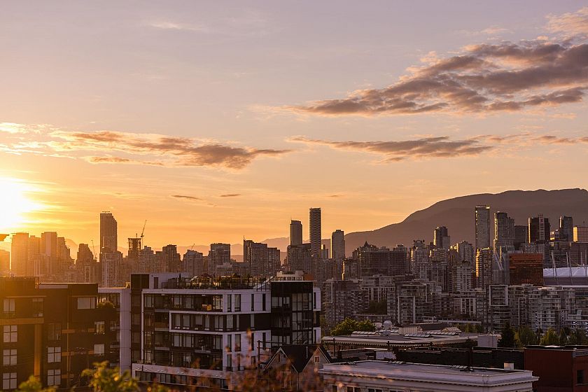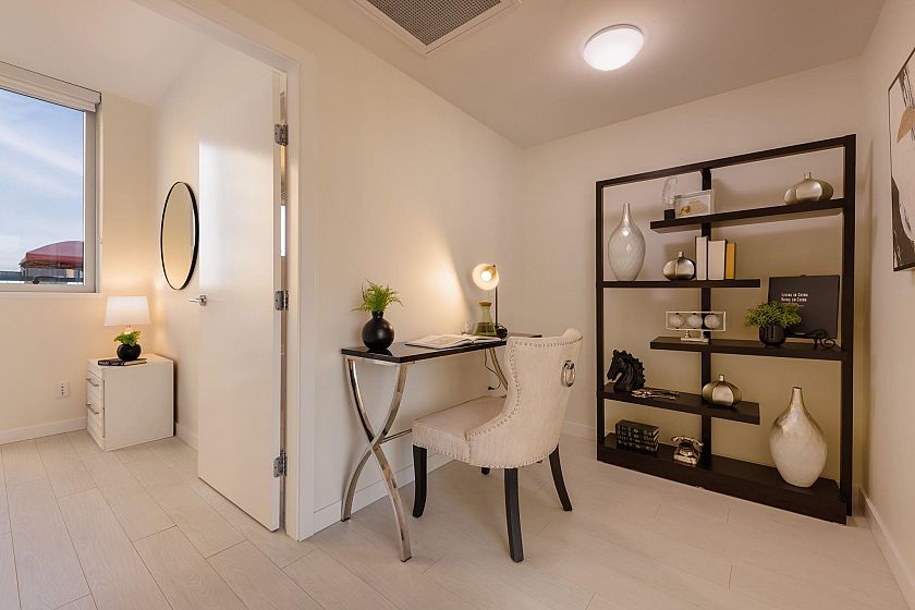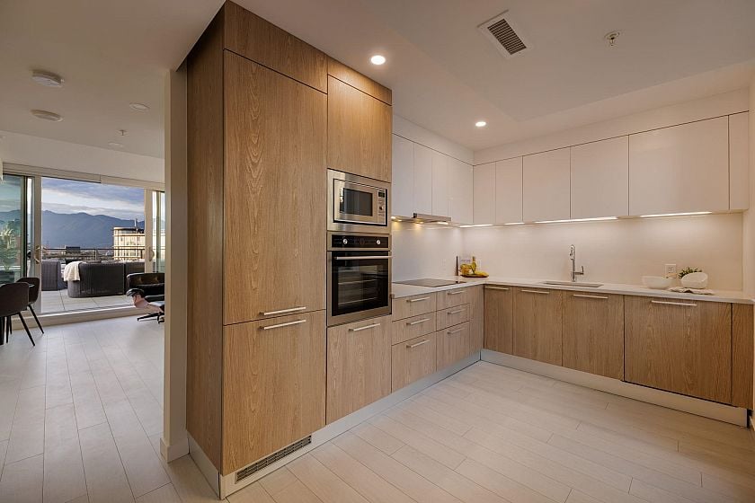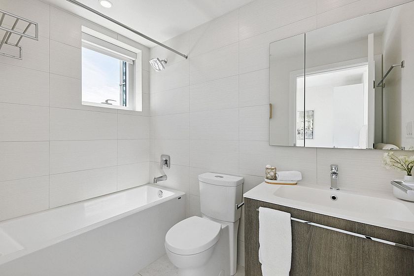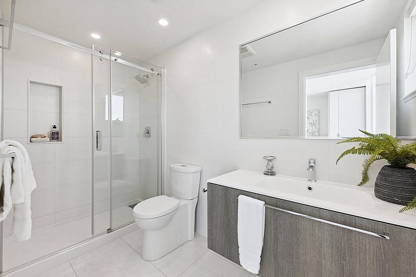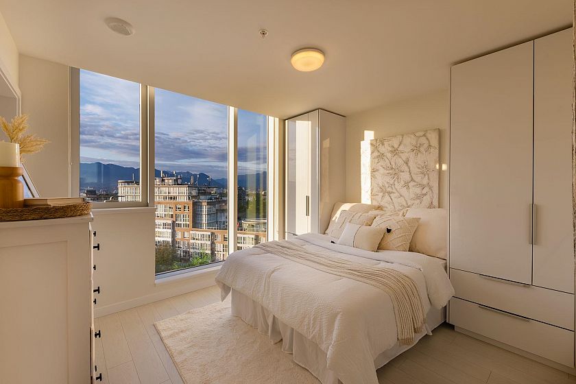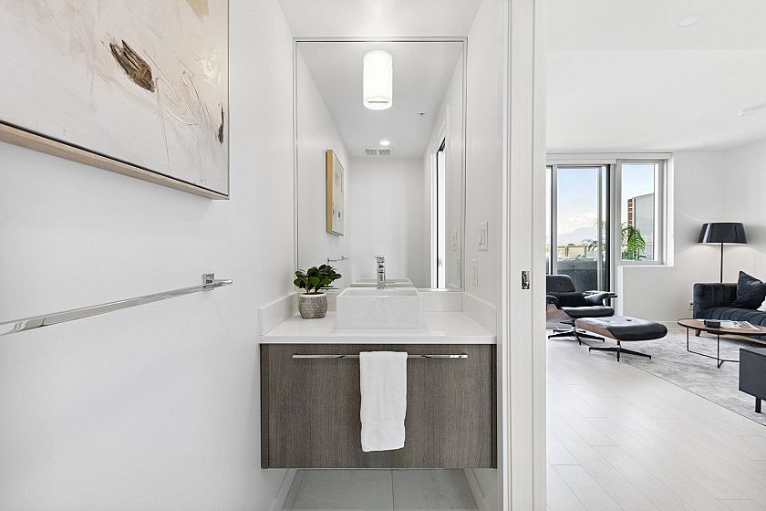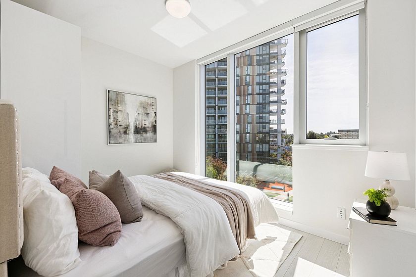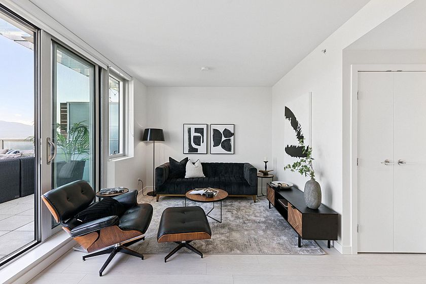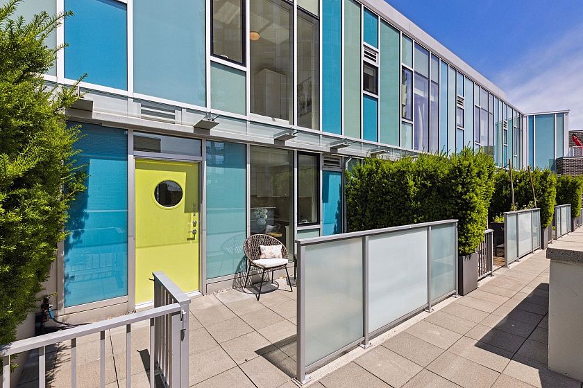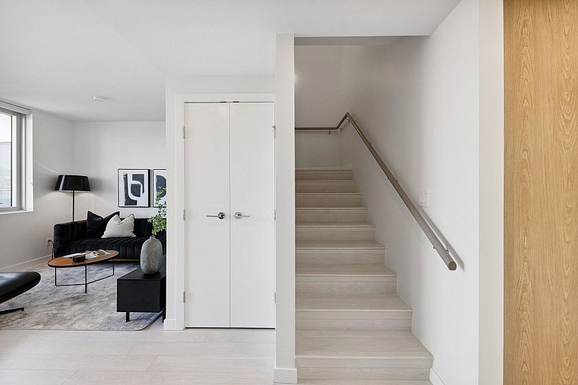 Elevated. Unrivaled. Captivating. This coveted 2 BED + DEN Podium Penthouse offers 1065 SF of modern living inside plus a BONUS 484 SF of outdoor space. Savor morning coffee w/courtyard views, host sunset dinners against the downtown skyline, or lounge & unwind under the stars - your TWO expansive deck areas offer the perfect backdrop for every moment. Enjoy soaring panoramic windows, A/C & a sleek Italian kitchen w/clean modern lines. Upstairs, 2 en-suited bedrms & an open DEN provide space to recharge & relax. 1 parking & 1 locker. BEST amenities: 3,000 SF lounge w/kitchen & meeting room, gym, guest suite, hobby room, 20,000 SF courtyard w/BBQs, dog wash, community gardens, kids play area. 100 Walkscore in the heart of this vibrant urban community & new Skytrain Stn.