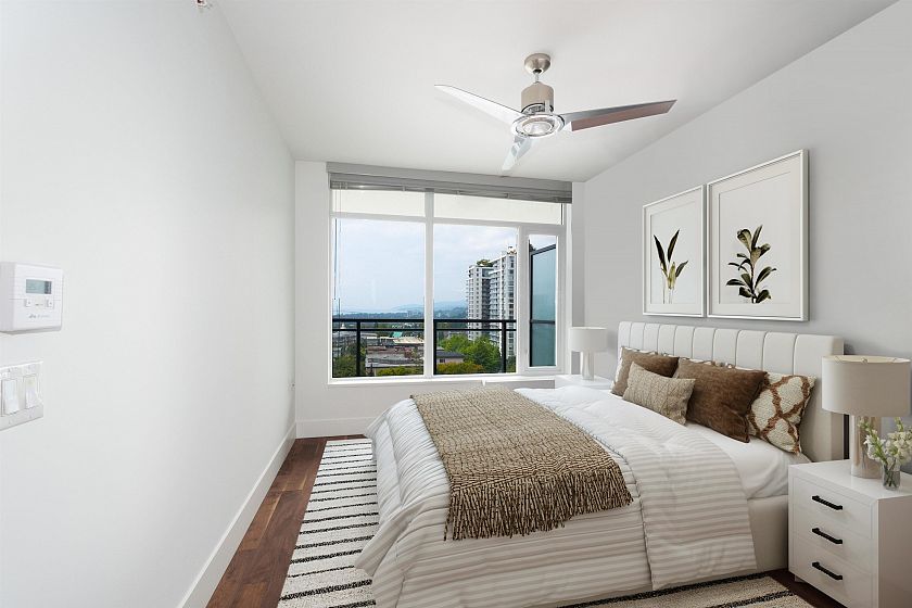 Freshly painted and elegantly appointed, this southwest-facing two-bedroom plus den, two-bath home at The Prescott offers 957 sq. ft. of bright, open living. A 140 sq. ft. covered patio extends your space outdoors, showcasing sweeping SW city, ocean, and mountain views. Only 11 years young, this sought-after Central Lonsdale building puts Whole Foods, boutique shopping, fitness studios, vibrant dining, and scenic parks at your doorstep. Enjoy the perfect blend of urban convenience and North Shore lifestyle with one secure parking stall, a storage locker, and two bike stalls included. A rare opportunity to own in one of North Vancouver’s most desirable communities! Freshly painted and very easy to show!