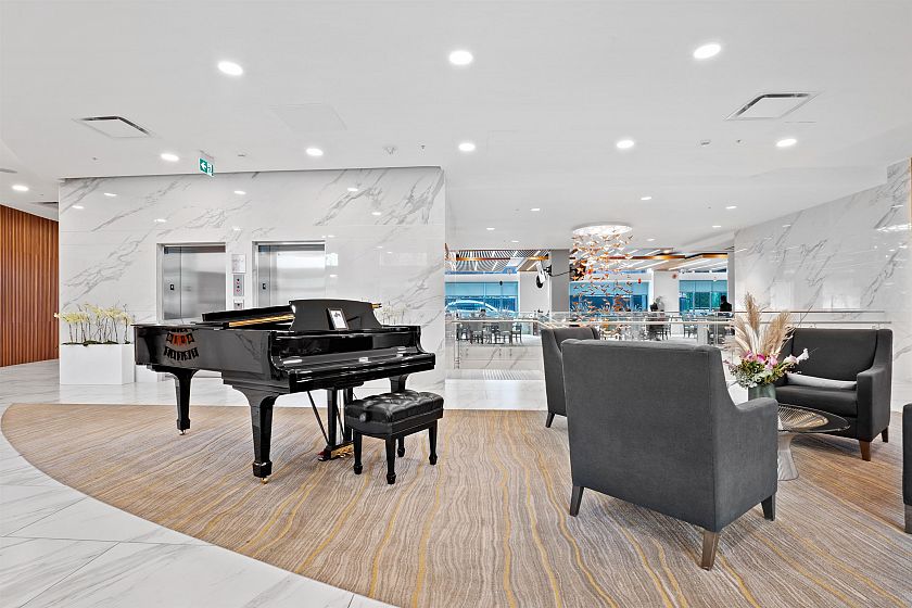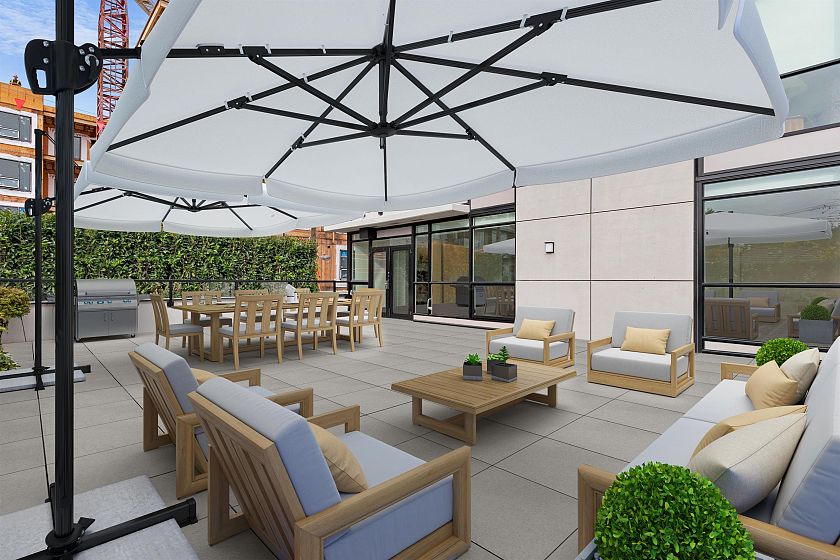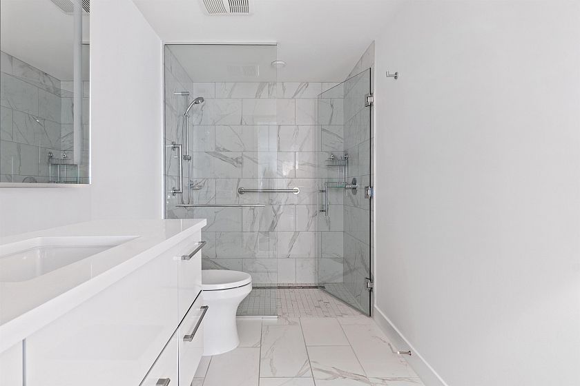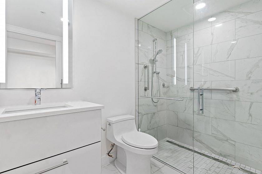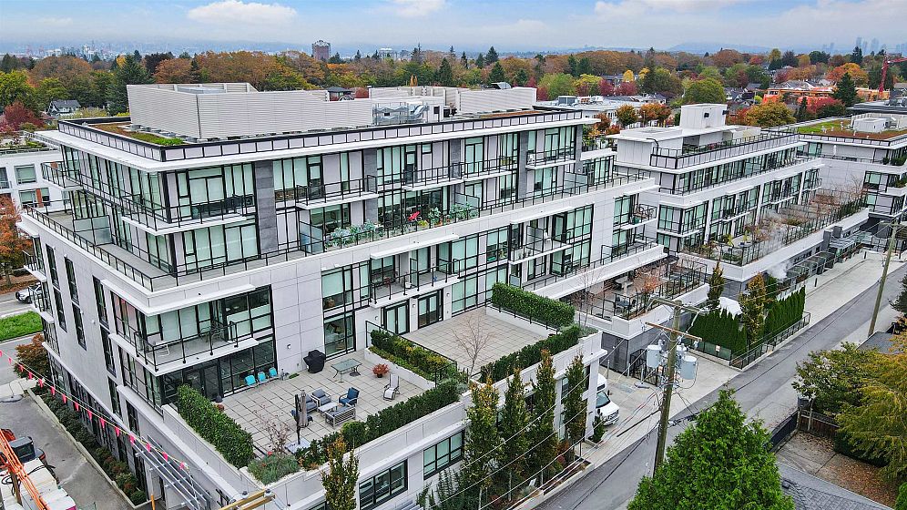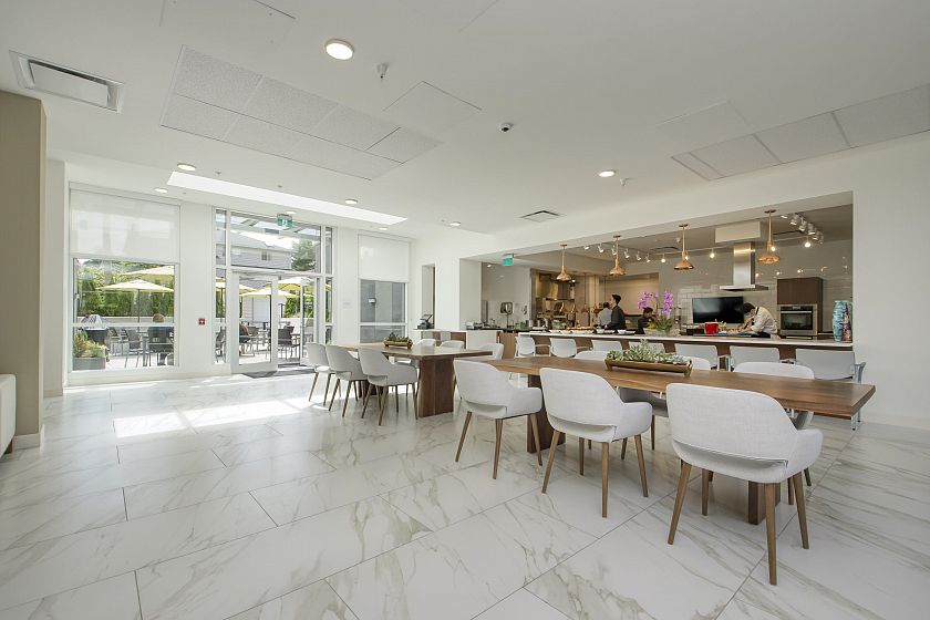 Welcome to the Opal, a refined living experience for the discerning 55+ community in Vancouver's west side. This 2-bed, 2-bath home boasts a 1,000 sqft private patio located on the South Side of the building (Quiet Side). Open concept kitchen with an entertainers island and Bosch stainless steel appliances make up the elegant kitchen. Discover ten unique dining spaces, unwind in the fireside library lounge, or rejuvenate in the Natural Wellness Spa with its one-of-a-kind Himalayan rock salt sauna. Enjoy the rooftop patio and lush garden. Explore your passions in music, art, and workshop studios. Keep fit in the specialized gym, or enjoy a game night in the hobbies and games area. Parking is via rental and can be carried over to new owners.