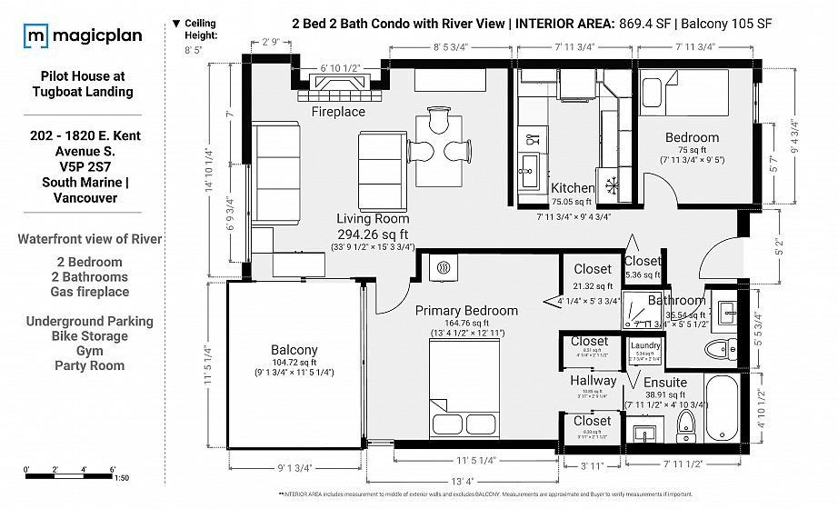 Priced below Assessment for FTHB or Investors! Welcome to Pilot House at Tugboat Landing - Riverside Living! This bright and spacious 2 bed 2 bath SW facing home, complete with a large 105 sq ft patio overlooking the Fraser River - ideal for BBQs and outdoor entertaining. This generously sized 2 bed/2 bath corner unit with exterior entrance comes with a primary that comfortably fits a king size bed that features an ensuite with a his & hers closet and a walk-in closet for additional storage. Primary has new wool carpet. The 2nd bedroom (w/window but no closet) easily accommodates a twin sized bed and desk, making it perfect for a guest space or home office. Floor-to-ceiling windows that flood the space with natural light, showcasing stunning river views and a warm, inviting atmosphere.