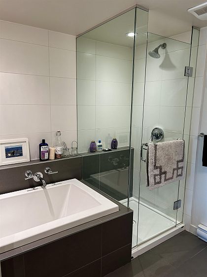 Sought after unit at the award winning District Crossing complex is both bright and spacious. Centrally located in a developing neighbourhood. Walk score of 87 with close proximity to shopping, parks, restaurants, transportation and amenities. Only one of two "J" plans available - largest and open floor plan with 2 separated bedrooms and a den (can be used as a third bedroom) with bonus insuite storage. Features include gourmet kitchen with custom cabinets, quartz countertops, S/S appliances, spa master bath with soaker tub and separate shower. New flooring throughout. Large spacious living area also offers a view of Vancouver. The complex is well run with a well equipped gym, party room and bike room. One parking, storage locker, pets and rentals allowed.