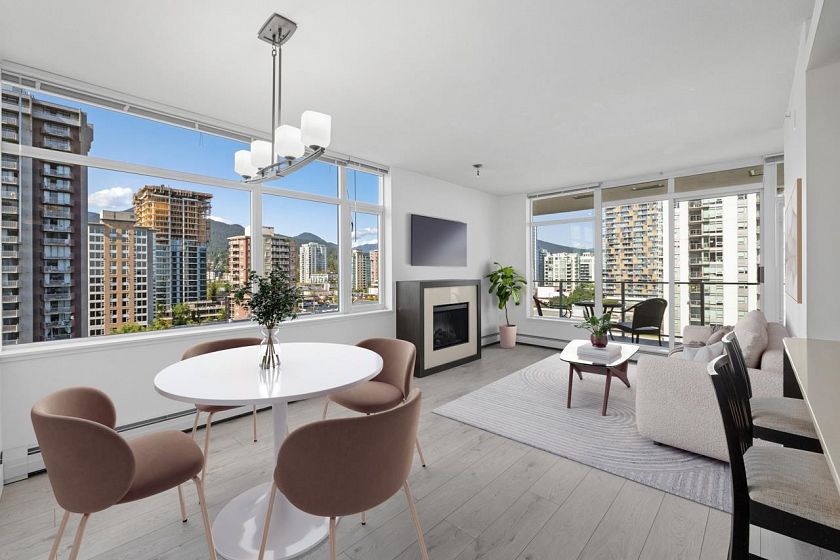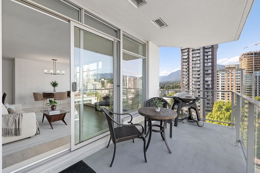 Bright + freshly painted 2-bedroom, 2-bath CORNER with 2 PARKING + large STORAGE locker, at sought after Vista Place. Great layout, private exposure, stunning mountain + city views. Featuring newer hard surface flooring, quartz counters, stainless appliances, cozy fireplace + in-suite laundry. Large windows fill the space with natural light throughout the day. Enjoy your morning coffee or yoga a sun-drenched, oversized balcony. Pet and rental friendly. Proactive strata, onsite building manager +~1.566m in CRF. The LEED Silver certified building offers top-tier amenities including fitness centre, guest suite, party room + bike storage. Best location in the heart of Central Lonsdale, just steps to WholeFoods, amazing restaurants, shops, parks, transit + top schools.