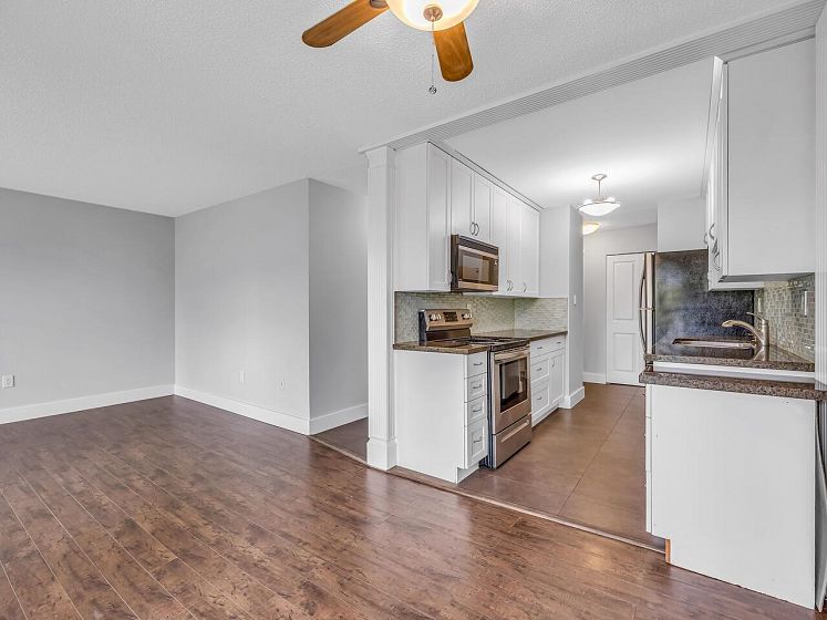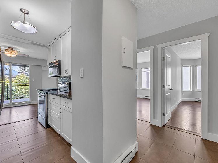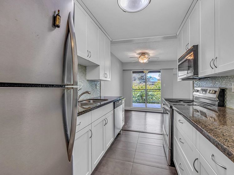 Hastings Sunrise/ East Village TOP FLOOR CORNER 2 bdrm unit with North Shore mountain and partial ocean views. Offering well-sized layout w/ spacious open living/dining area leading to a nice sized balcony. Featuring granite counters, S/S appliances, laminate floors and freshly painted. Enjoy peace of mind with a very well-maintained building having a FULLY RAIN-SCREENED exterior in 2021 (including new windows, doors, and patio) and a resealed garage and new fence. Explore nearby shops, cafes, bike paths, numerous parks, off leash area, and transit just around the corner. Includes 1 secure underground parking space, a generous sized locker and bike storage. Pets and rentals are permitted (with restrictions). Sold.