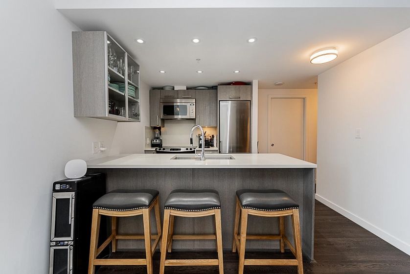 Welcome to your new home in the vibrant heart of Strathcona, where mountain & water views meet modern charm. This bright, contemporary 2-bed, 2-bath corner suite fts a thoughtfully designed layout that balances comfort & versatility. The open-concept gourmet kitchen, complete with stainless steel appliances, sleek stone countertops, & custom millwork. Unwind on your private balcony & take in the unobstructed views and fresh air. Perfect for first-time buyers, young families, professionals, or savvy investors, this suite truly checks all the boxes. Built by renowned & experienced builder, The Wall Group, the building boasts outstanding amenities, including fully equipped fitness centre, meeting rooms, & beautifully landscaped rooftop gardens w/ BBQ. Comes with 1 Parking & 1 Storage.