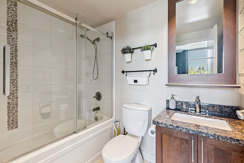 Come home to this bright 2 bedroom, 2 bathroom & den corner unit at The Vine - a solid, concrete building in one of Vancouver’s most central & walkable locations. Enjoy panoramic views of the mountains & ocean from your couch, bed or balcony. A spacious layout is finished with engineered hardwood floors. A modern kitchen features granite countertops & stainless steel appliances. While the comfortable primary includes carpet, walk-in closet & ensuite bathroom; set away from the living, 2nd bedroom & flex for a good night's sleep. Find everything you need within this well-maintained, pet & rental-friendly building. Easy, direct elevator access to IGA & London Drugs + 1 secure parking spot in the garage below. Live/invest in the Kits-Broadway corridor with the skytrain coming in 2027.