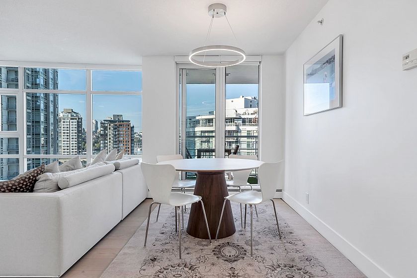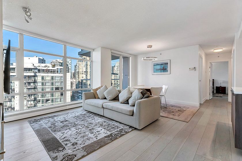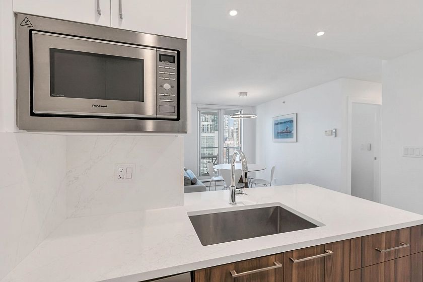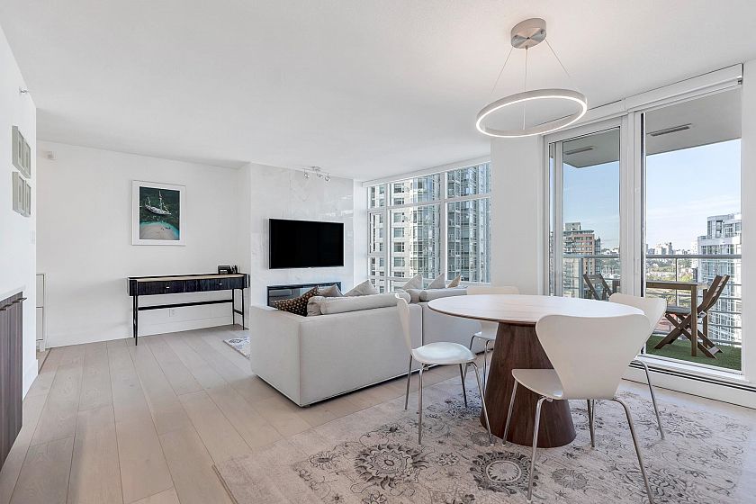 EXCEPTIONALLY maintained, fully renovated (2022) home in the best location Vancouver can offer. Waterfront living at your doorstep with immediate access to the rapid transit. Suit offers a two-tone kitchen finished in white lacquer and warm wood tones, featuring stainless steel appliances with a gas range. Open living/dining area is anchored by a linear gas fireplace and finished with marble surround. The primary bath is wrapped in marble tile and offers a walking shower with two faucets. Storage/closets throughout have been maximized with built-in cabinetry. Beautiful view overlooking the inner Aquarius pond and out to the marina and False Creek inlet. Building offers 24/7 concierge, meeting rooms, large gym, pool, sauna, steam room and visitor parking.