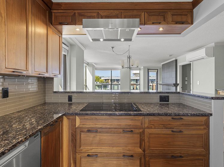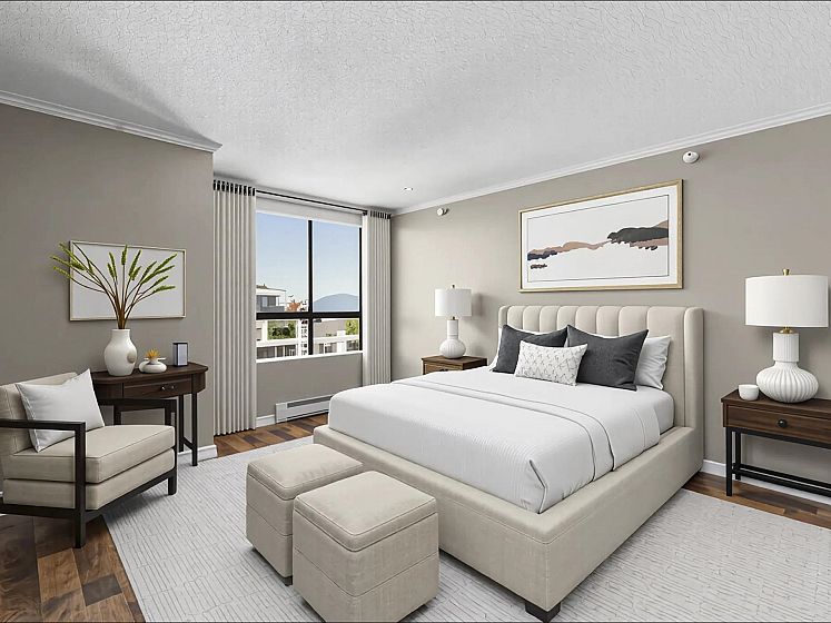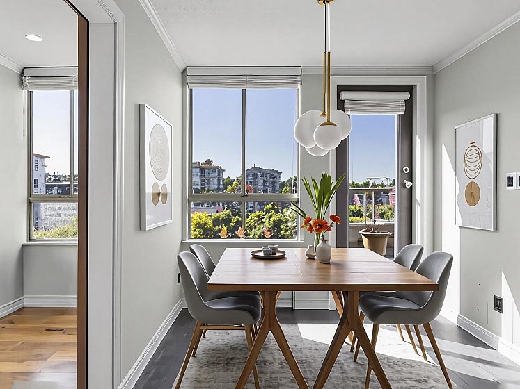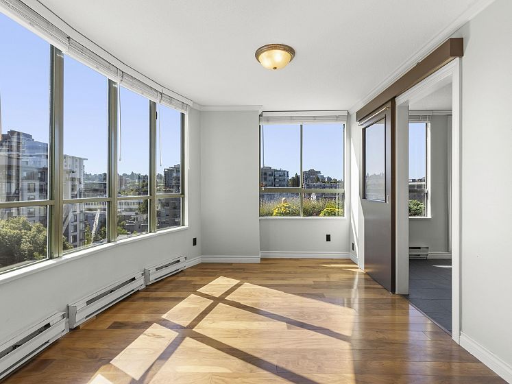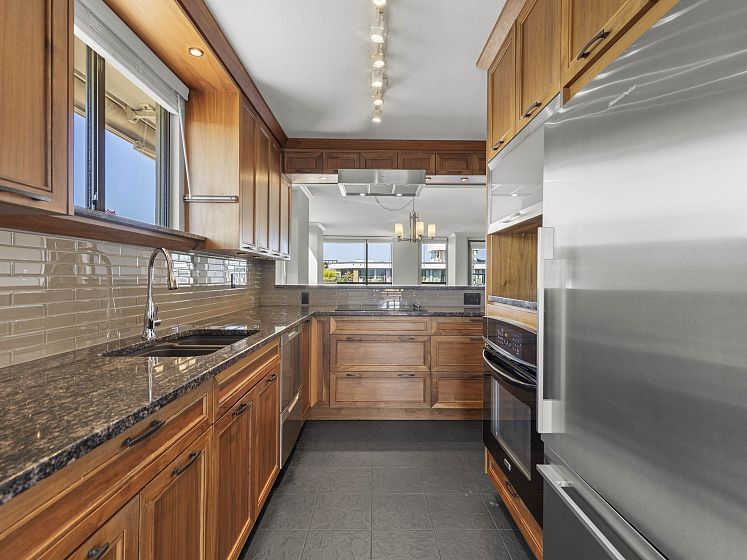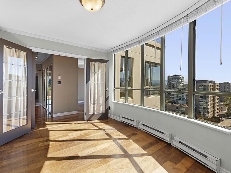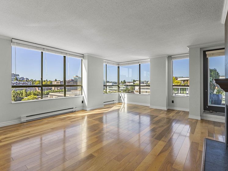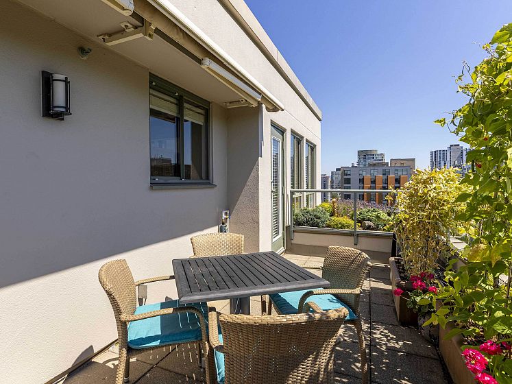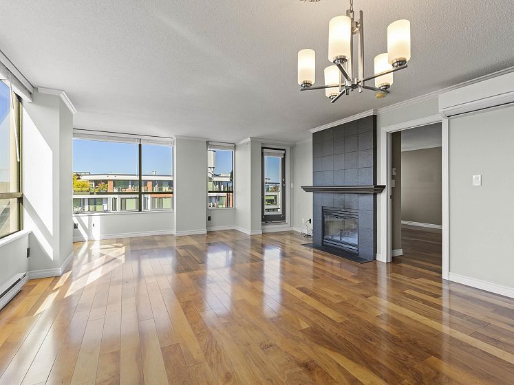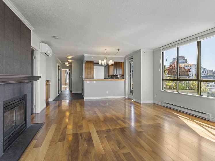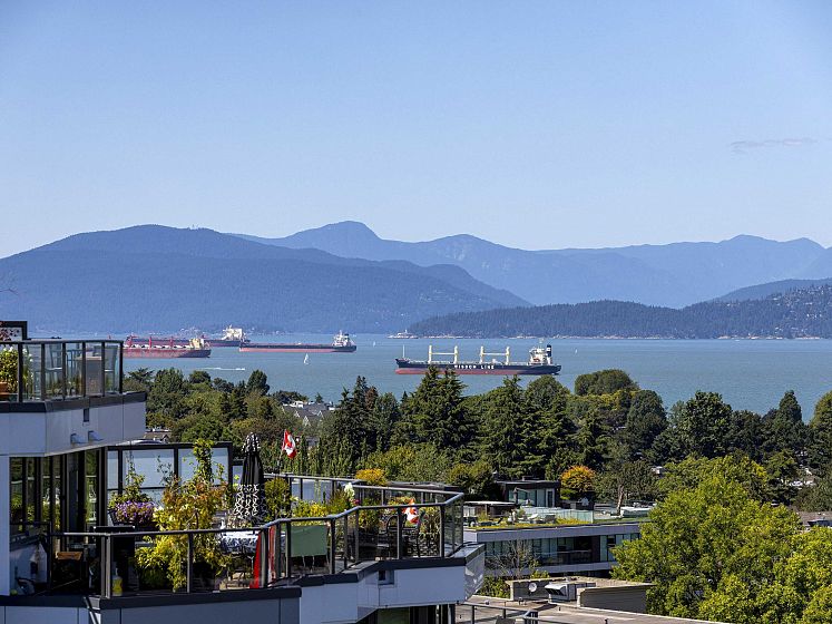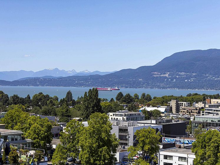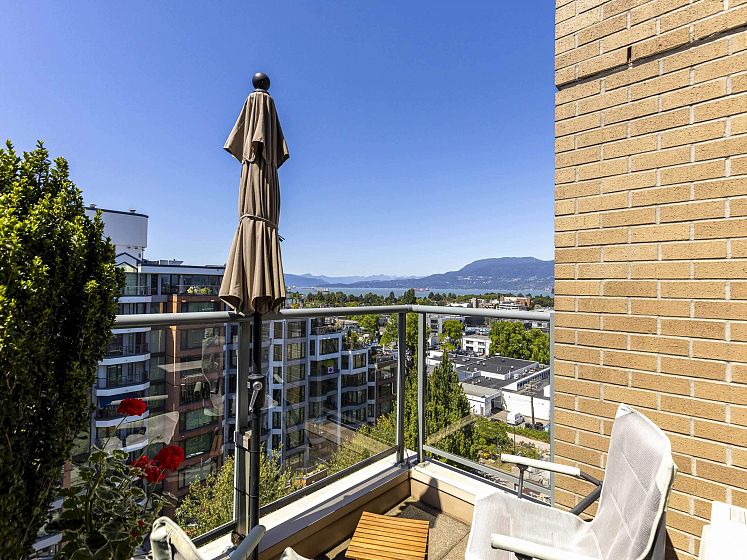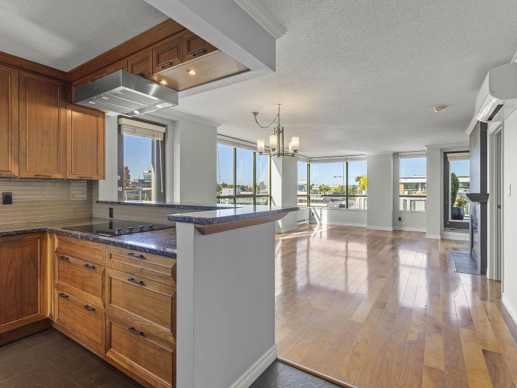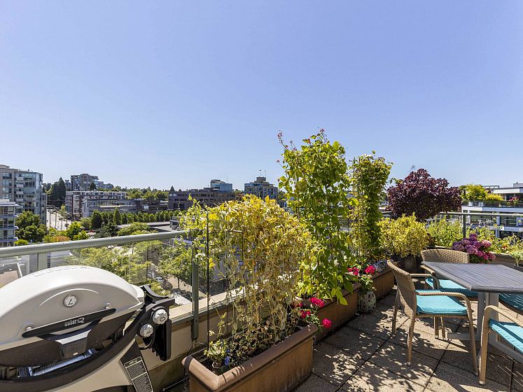Rarely available PENTHOUSE at The Fairview! This sprawling East, South & West view property of almost 1,600 SF features 2 beds, 2 1/2 baths, a large den, which could be used as a 3rd bed, plus an eating nook off the kitchen. House like floor plan features updated kitchen, walnut floors, cabinetry, custom pantry & book shelves, gas fireplace, 2 patios, A/C & Miele W/D. Generous primary bedroom features multiple closets, renovated spa-like bath with in-floor radiant heat, double vanity, cosmetic bar, quartz counters & walk-in shower. Walking distance to fabulous cafes, shops, 5th AVE Cinema, West 4th & Broadway, South Granville & the anticipated Burrard Slopes Park. Bonus: 2 side by side parking, locker, visitor parking, indoor pool, gym & live-in caretaker. WOW!