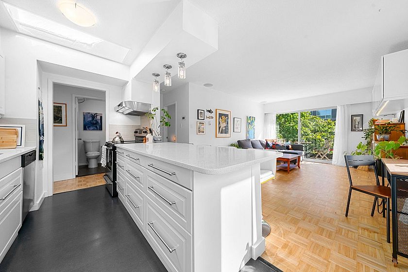 Welcome home to this bright and airy 2-bedroom top-floor corner retreat in charming Glen Oaks, a boutique 8-unit building in the sought-after Cambie Corridor. Stylish and welcoming, it features a sleek updated kitchen with quartz counters, stainless appliances and custom cabinetry, re-finished parquet hardwood floors, and an open layout perfect for gathering with friends. Relax with morning coffee or evening cocktails on the sunny southwest balcony. Steps to Douglas Park and walking distance to Emily Carr Elementary and Eric Hamber Secondary. Shared laundry, 1 parking, 1 storage, and pet-friendly living (1 dog or 2 cats) complete the package *no elevator*