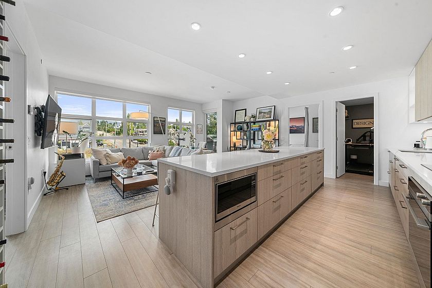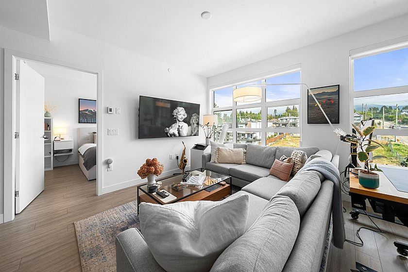 Top-floor stunner at The Green on Queensbury! This over-1,000 sq ft 2-bedroom + office home has only ever had one owner and feels like new, with a distinctive kitchen island, high-end appliances, and a covered deck with custom outdoor furniture and tiling that frames beautiful northeast views. You’ll get two rare side-by-side parking stalls wired for EV charging and access to great amenities including a gym and rentable guest suite, plus Moodyville Park— the best kids’ playground in North Van—right outside your door. Just a short stroll to breweries, restaurants, coffee shops, the SeaBus, and Lonsdale Quay, this home blends coastal luxury with everyday convenience in one of North Vancouver’s most vibrant communities.