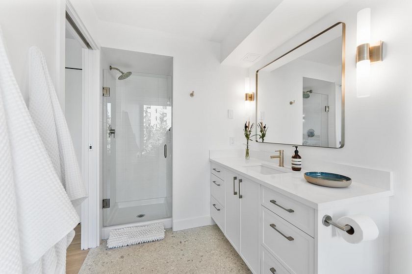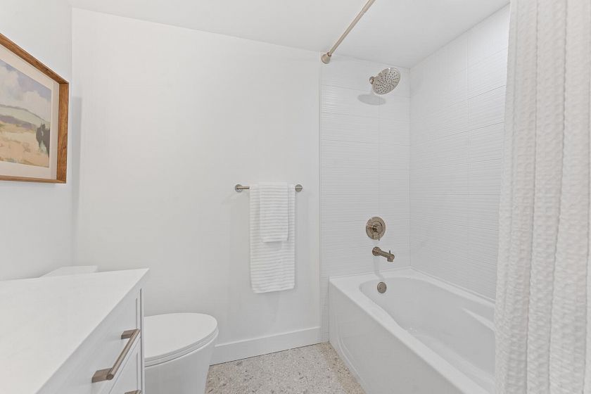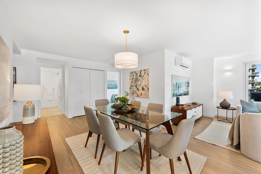 This is a brand new, stunning, 2 bedroom/2 bath reno including, A/C, drywall, electrical, plumbing, lighting, beautiful vinyl plank flooring (inc. cork sound damping underneath), all new appliances inc. Fisher Pakel fridge, hood fan, 5 burner stove, dishwasher, Bloomberg washer & dryer, gorgeous, elegant, custom cabinets throughout, kitchen with pull out pantry, fantastic tile, beautiful primary suite, entertainment sized principal rooms & large balcony with custom installed flooring. Building is extremely well managed & maintained. Amenities inc. party room, garden area, large outdoor swimming pool & hot tub. Comes with 2 parking (s/s) & locker-on same level. A short stroll to beaches, shops & gourmet restaurants. Come See for Yourself! By Appointment call-re: access to visitor prkg.