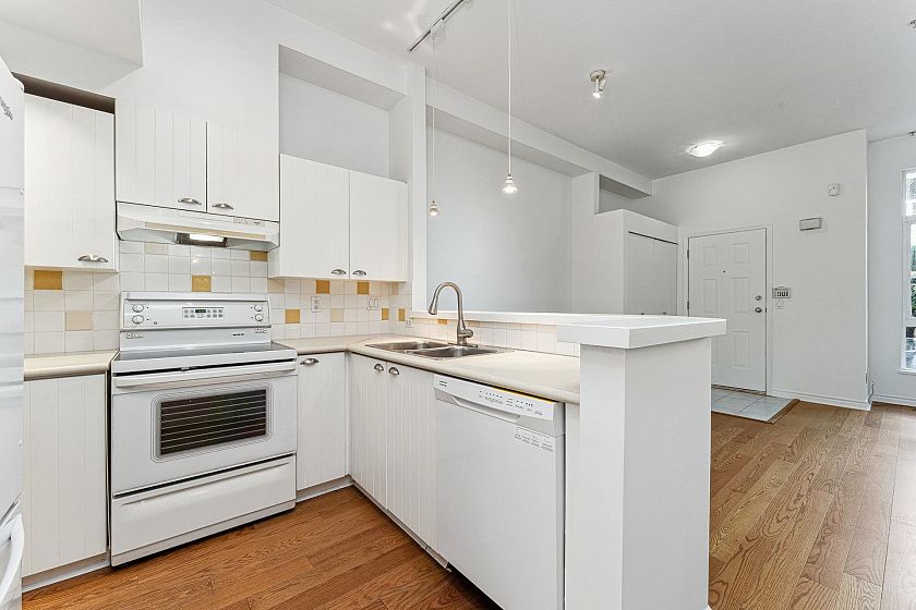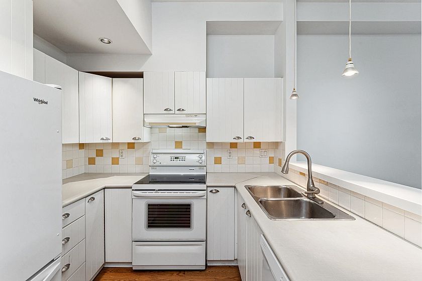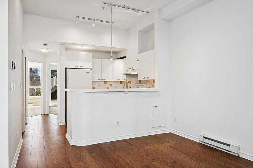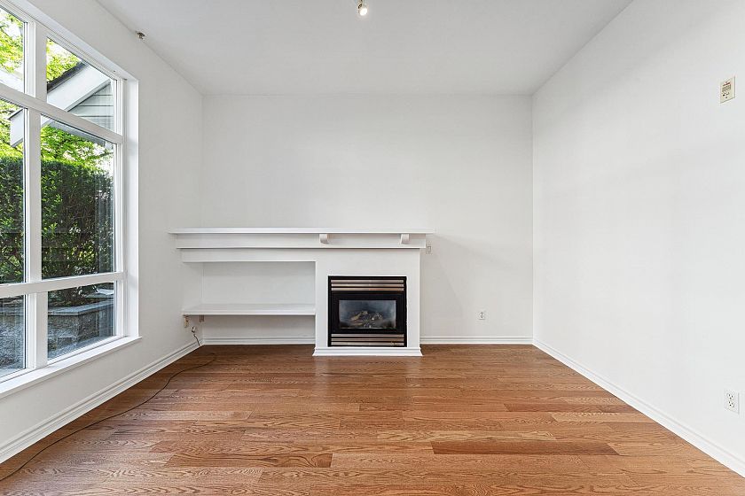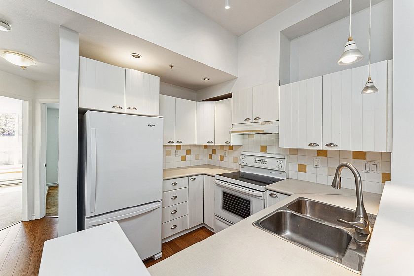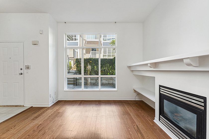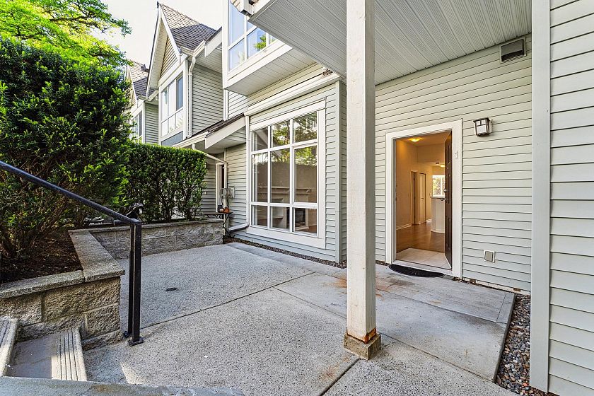 Garden-level townhome in the heart of family-friendly Lynn Valley. This bright & spacious 2-bed, 1-bath home offers 800+ sq/ft of single-level living w/great indoor-outdoor flow. Large windows fill the space w/ natural light, & the open-plan living/dining area feats hardwood floors, gas fireplace & vaulted ceilings for added volume. The adjacent kitchen is clean & functional w/ white cabinets, matching white appliances & great storage. The spacious primary has window bench seating, a walk-through closet & access to a shared 5-pc bath. Fresh paint & carpets! Enjoy morning and evening sun from two generous patios, perfect for lounging, dining, or gardening. Tucked into a well managed complex, just steps from Lynn Valley Centre, Kirkstone Park, Karen Magnussen Rec Centre, & desirable schools.