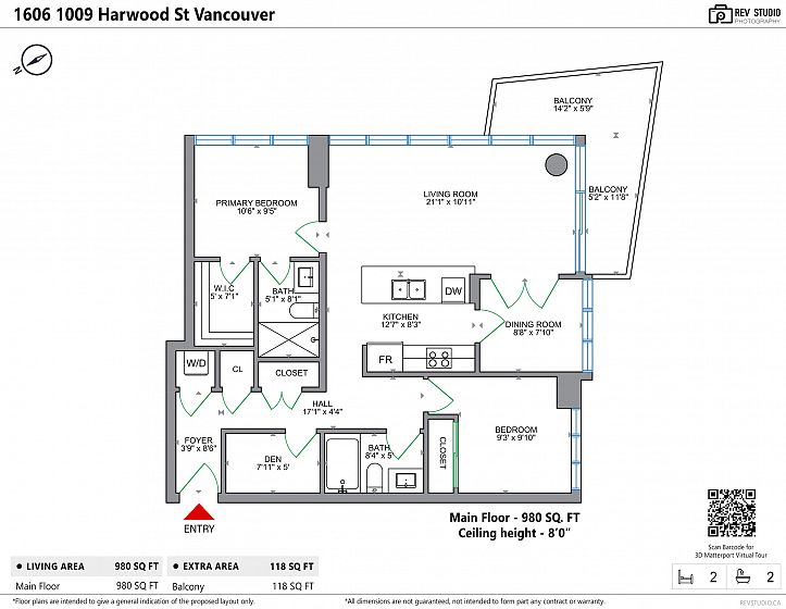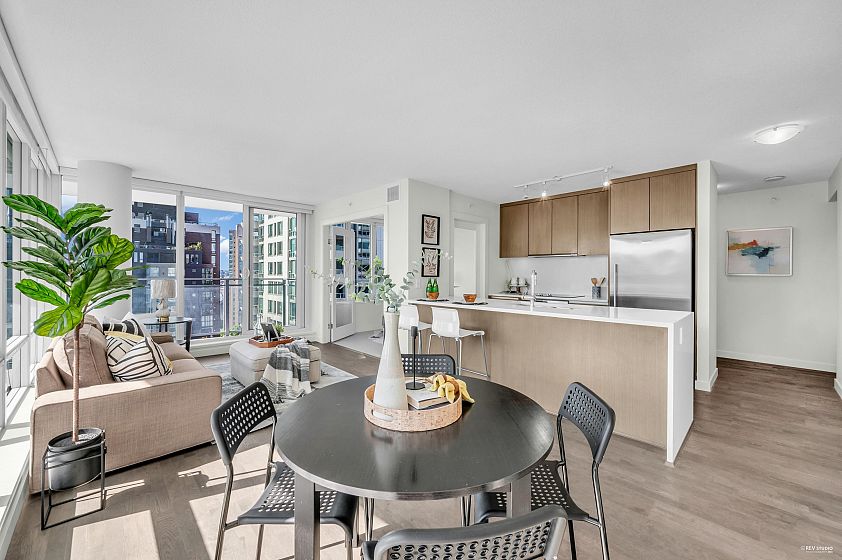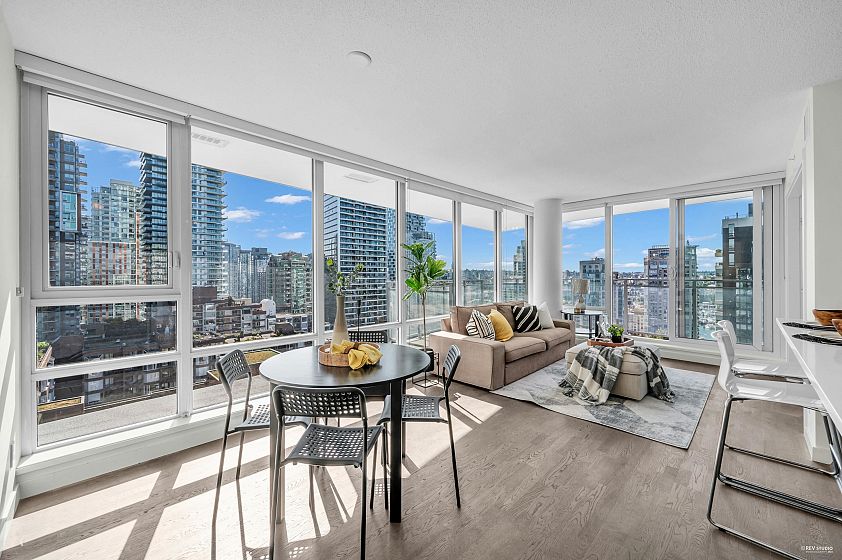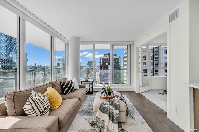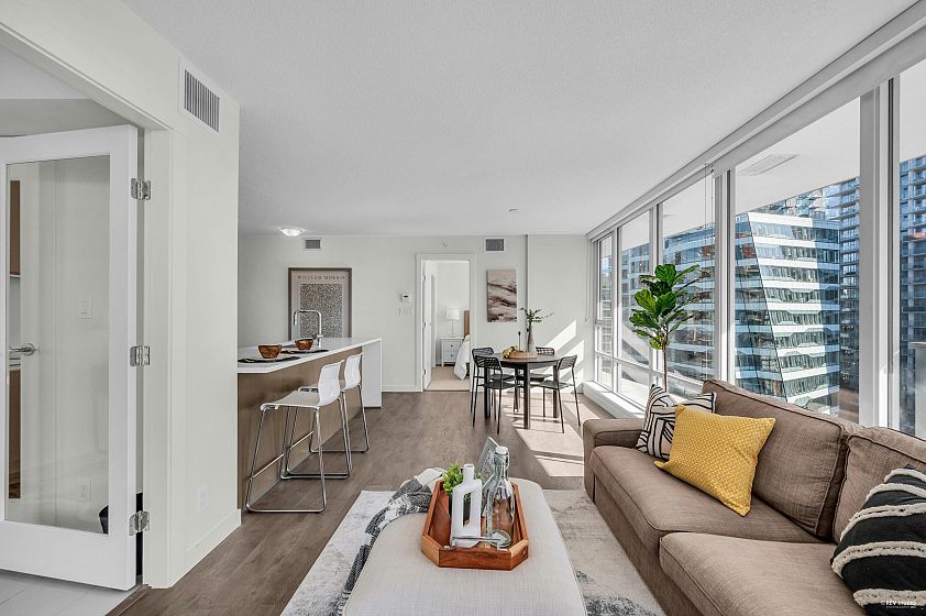 Step into the sky at Modern — where architecture meets light, and every window frames the soul of the city. This nearly 1,000 sqft Air-conditioned corner home at 1009 Harwood St offers 2 spacious bedrooms, a functional den, and a bonus flex room — bathed in natural light from 180° floor-to-ceiling windows. Wake up with the sunrise to the east, unwind with golden sunsets to the southwest, and watch the city pulse beneath you. From the dining room and second bedroom, catch glimmers of the water — a daily reminder that you live somewhere truly special. Tucked in the vibrant West End, just steps to beaches, boutiques, and the best of downtown, this home is more than a place to live — it’s a place to feel alive. Comes complete with A/C, parking, and storage. Come see it. Stay for the view.